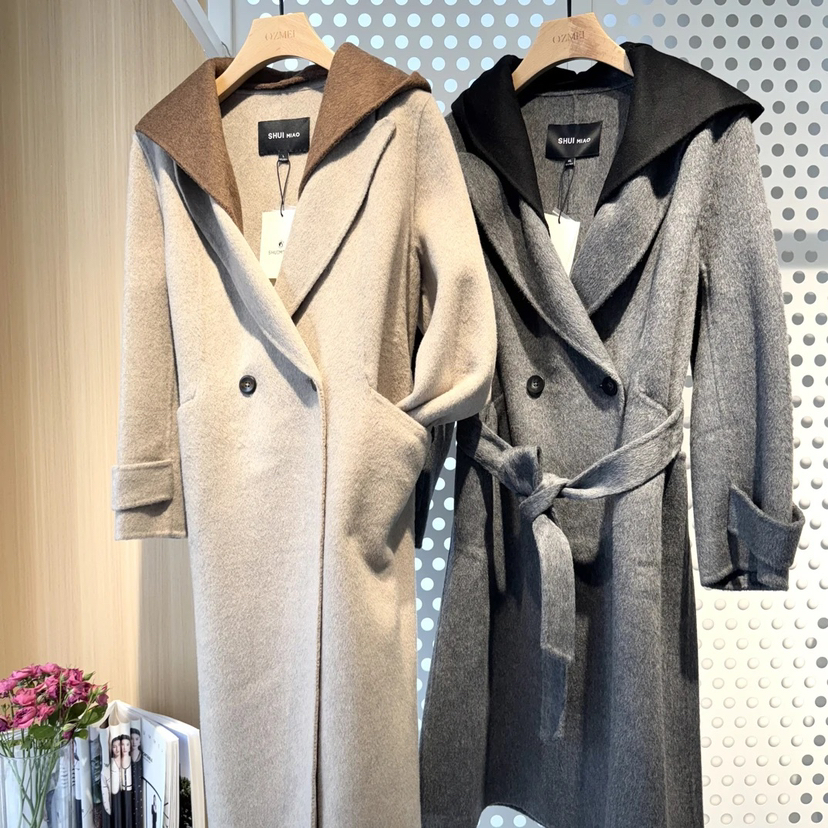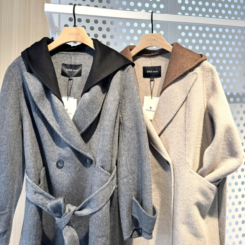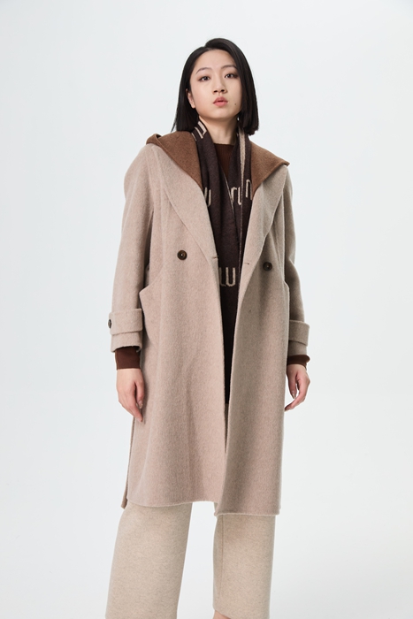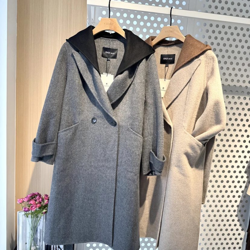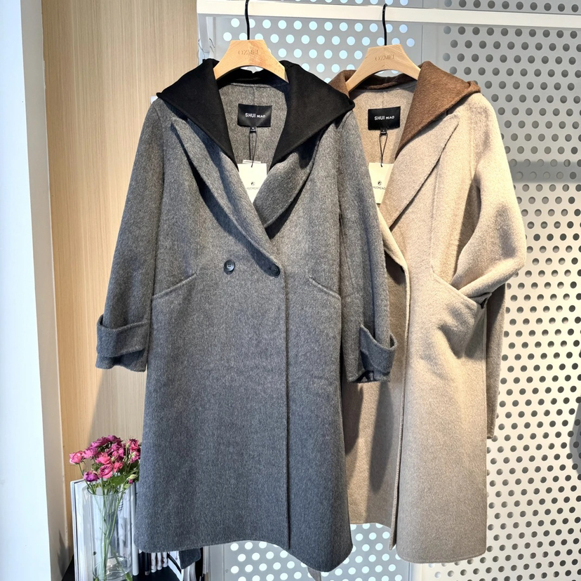 水淼秋冬新款1736连帽气质时尚休闲百搭双面呢宽松