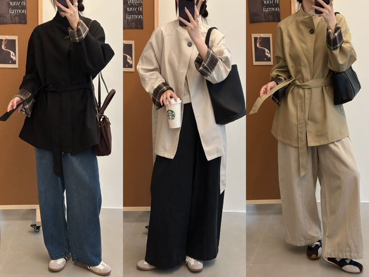 有三种颜色可选,都是风衣经典的颜色,不管什么风格都能hold住,职场风、休闲风、度假风,从20岁到60岁都能穿出自己的时髦感。