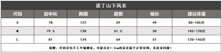 产品属性 品牌:BONELESS ABNER 品名:「诺丁山下」经典款风衣 面料:78.7%聚酯纤维、21.3%粘纤 内衬:100%聚酯纤维 颜色:卡其、米灰、黑色 尺码:S(80-105斤) M(105-120斤) L(120-145斤) |