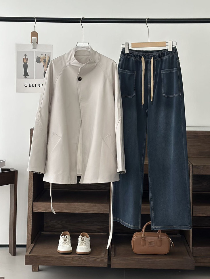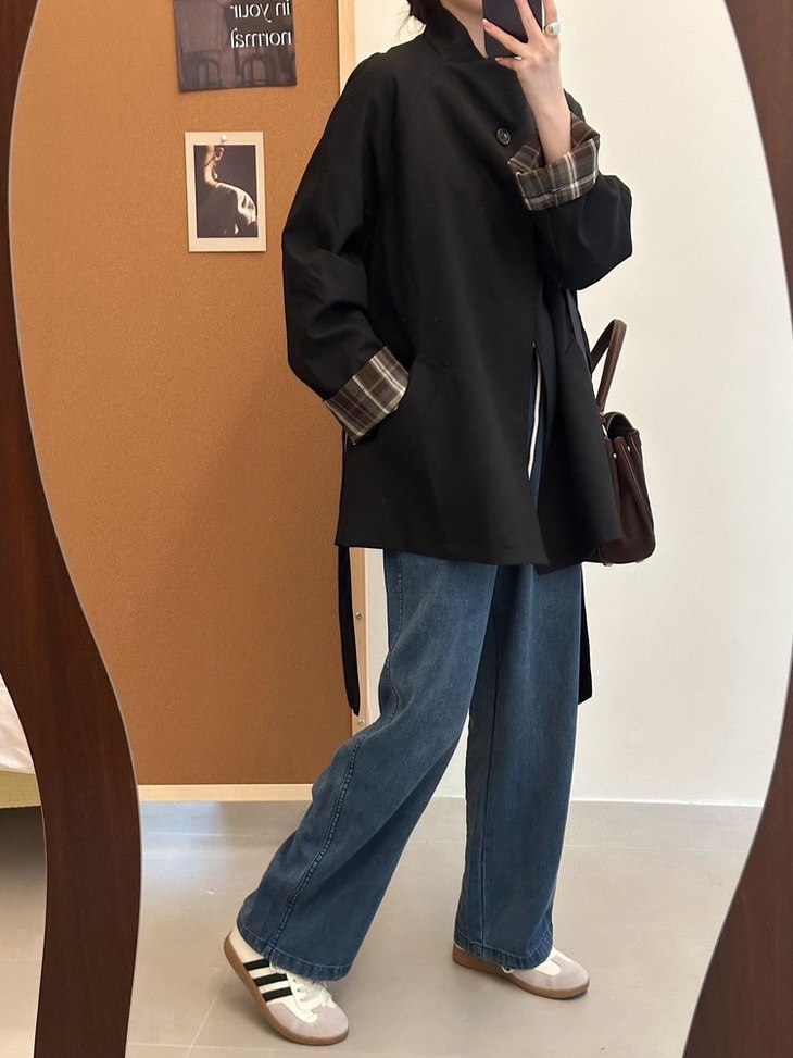 立领的设计利落高级,修饰肩颈线的同时,轻松打造直角肩,巨显脸小。