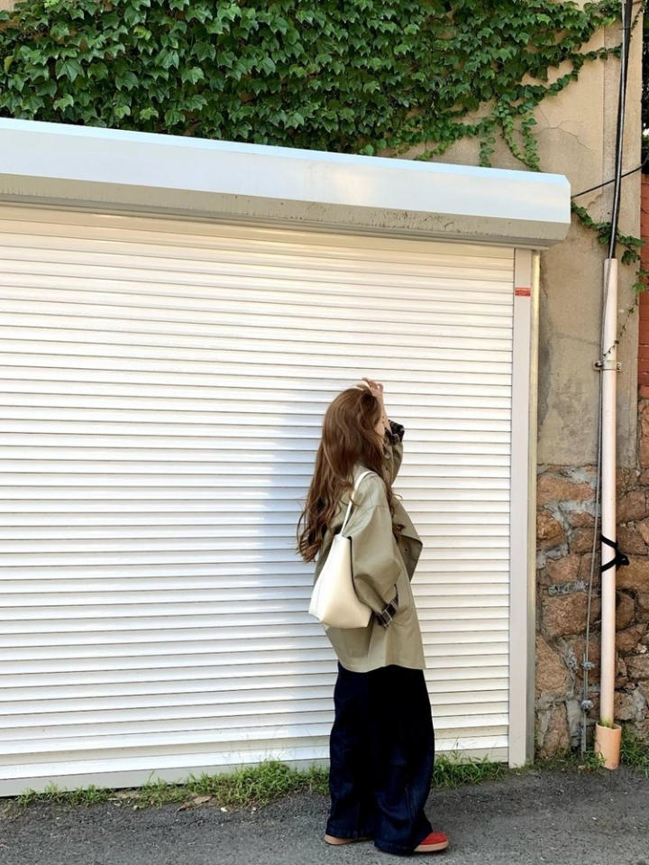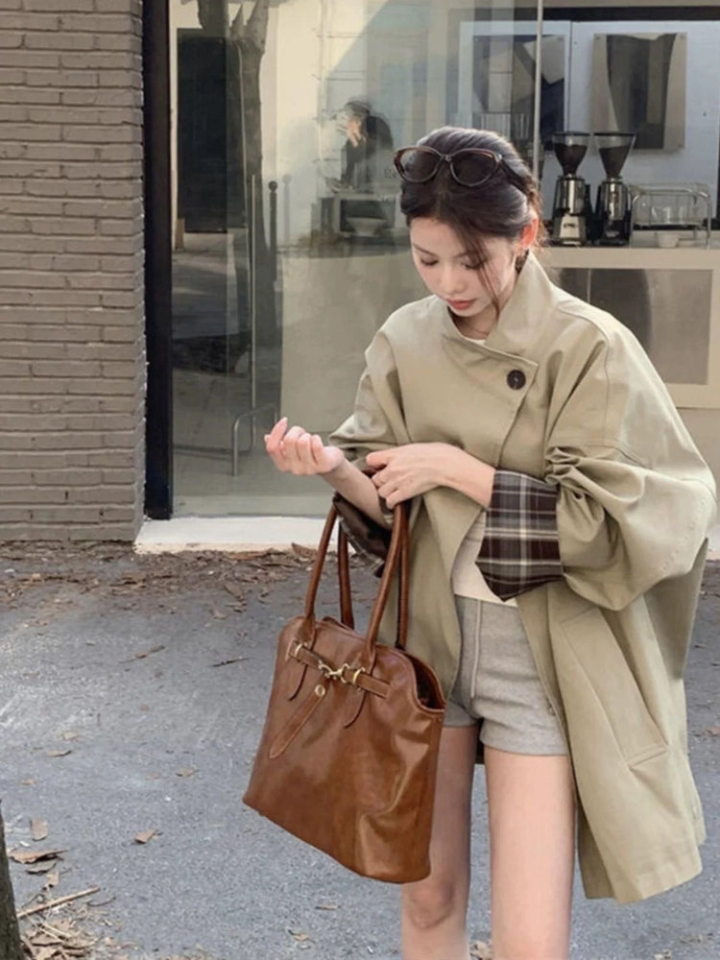 难得在短款的风衣里,能挑到这么一件oversize阔型宽的风衣,早秋很实穿。