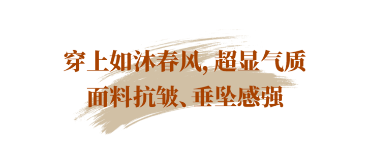 显瘦显高,垂坠感十足,无论身材高挑或娇小,都能穿出如沐春风的感觉。