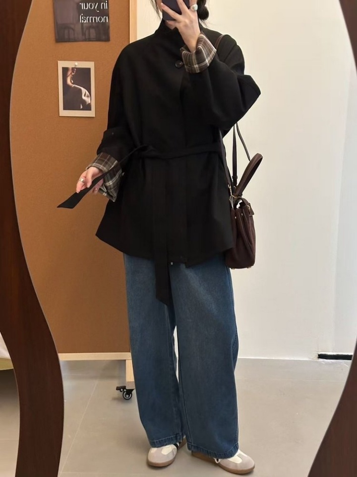 领口立起来既帅气又可抵御秋风,腰带按照自己的喜好,系上或者敞开,都是很干练的lady。