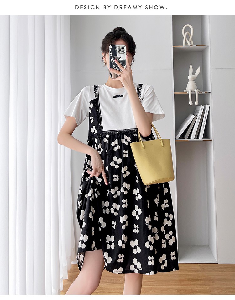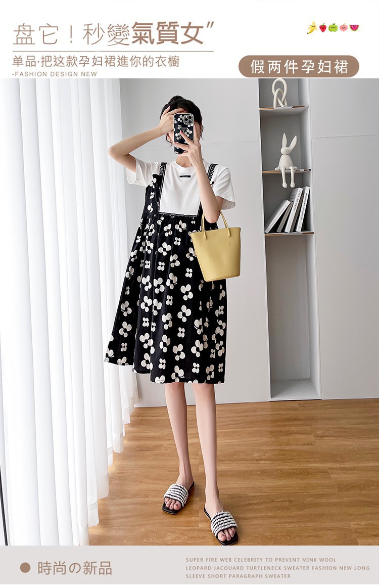 【显瘦遮肚 不挑孕期】实拍孕妇假两件连衣裙