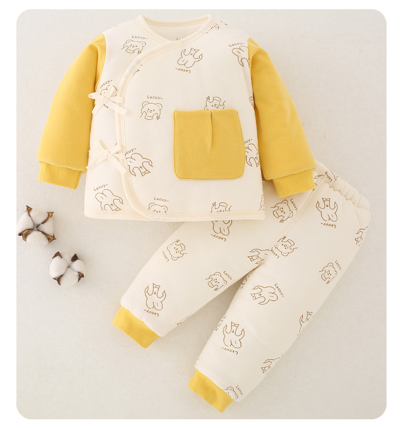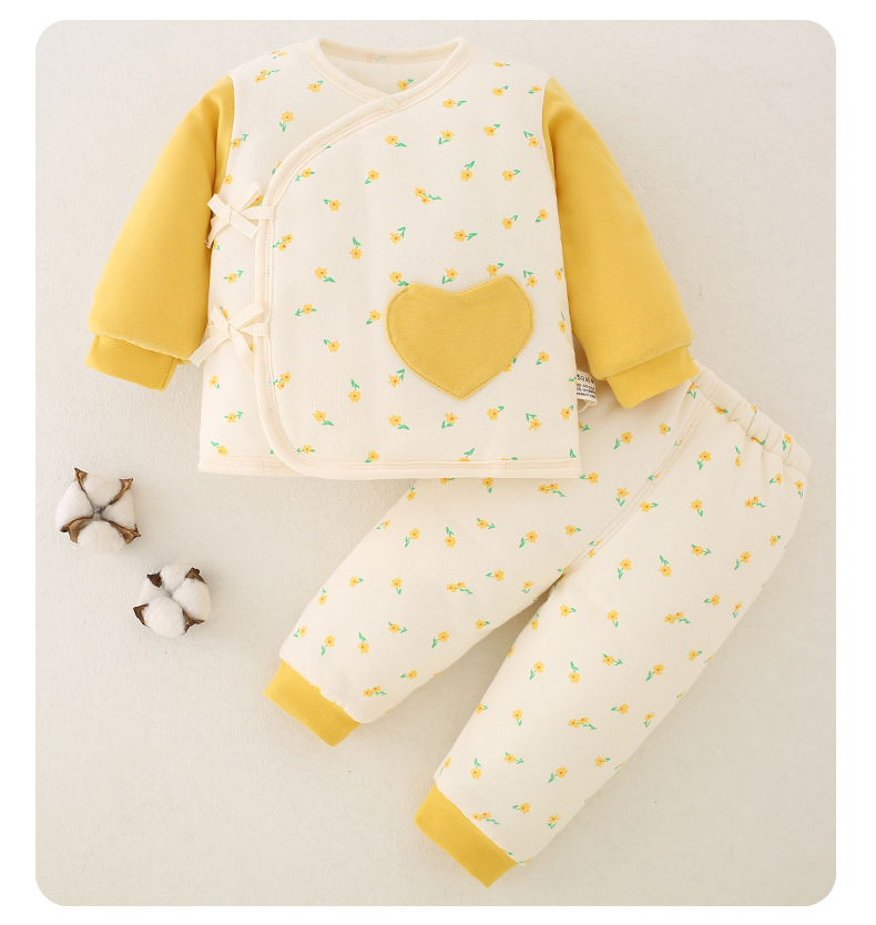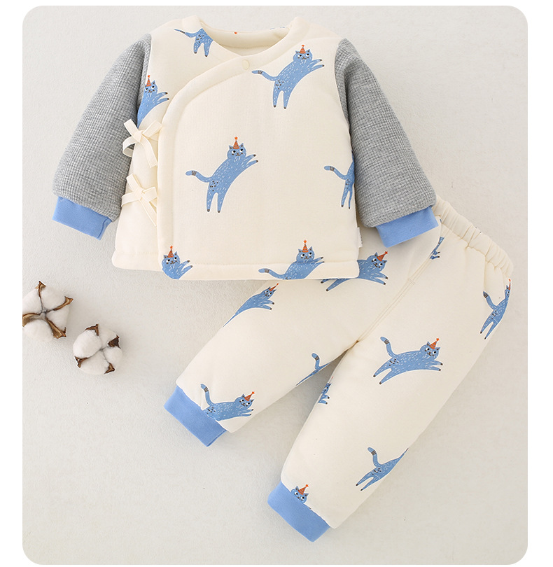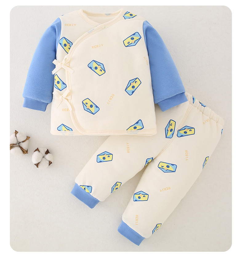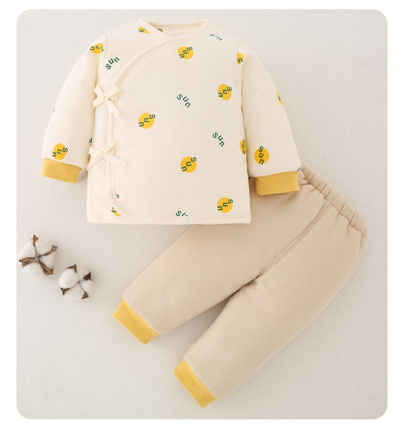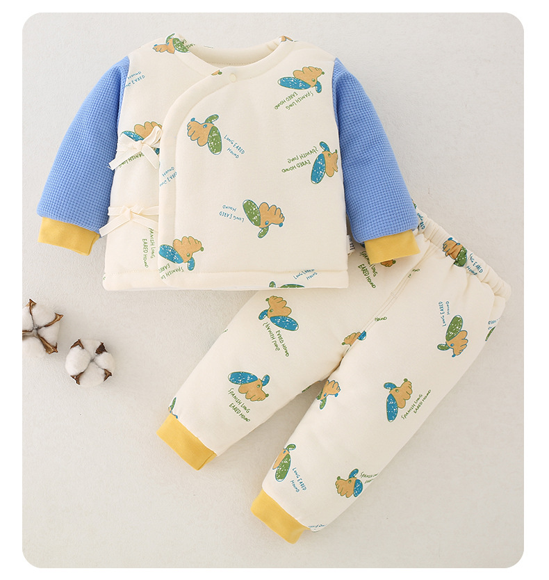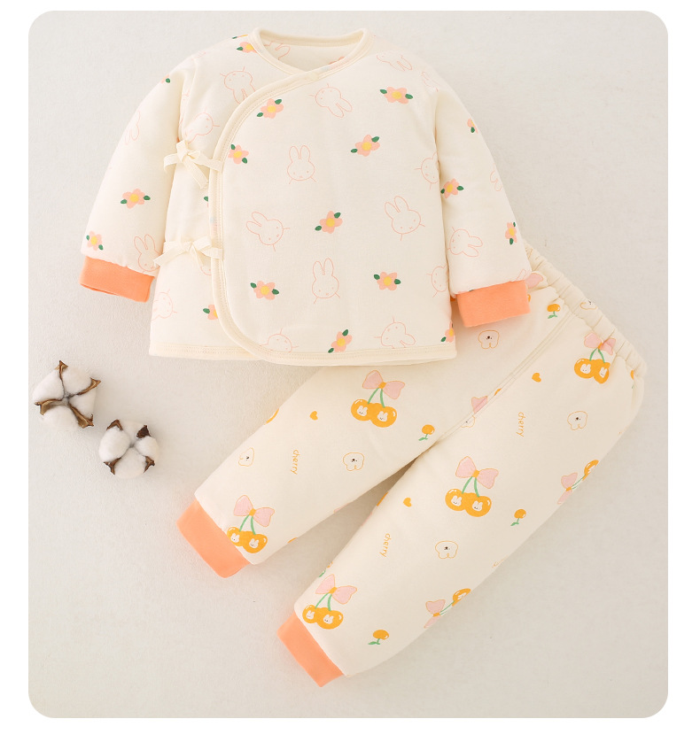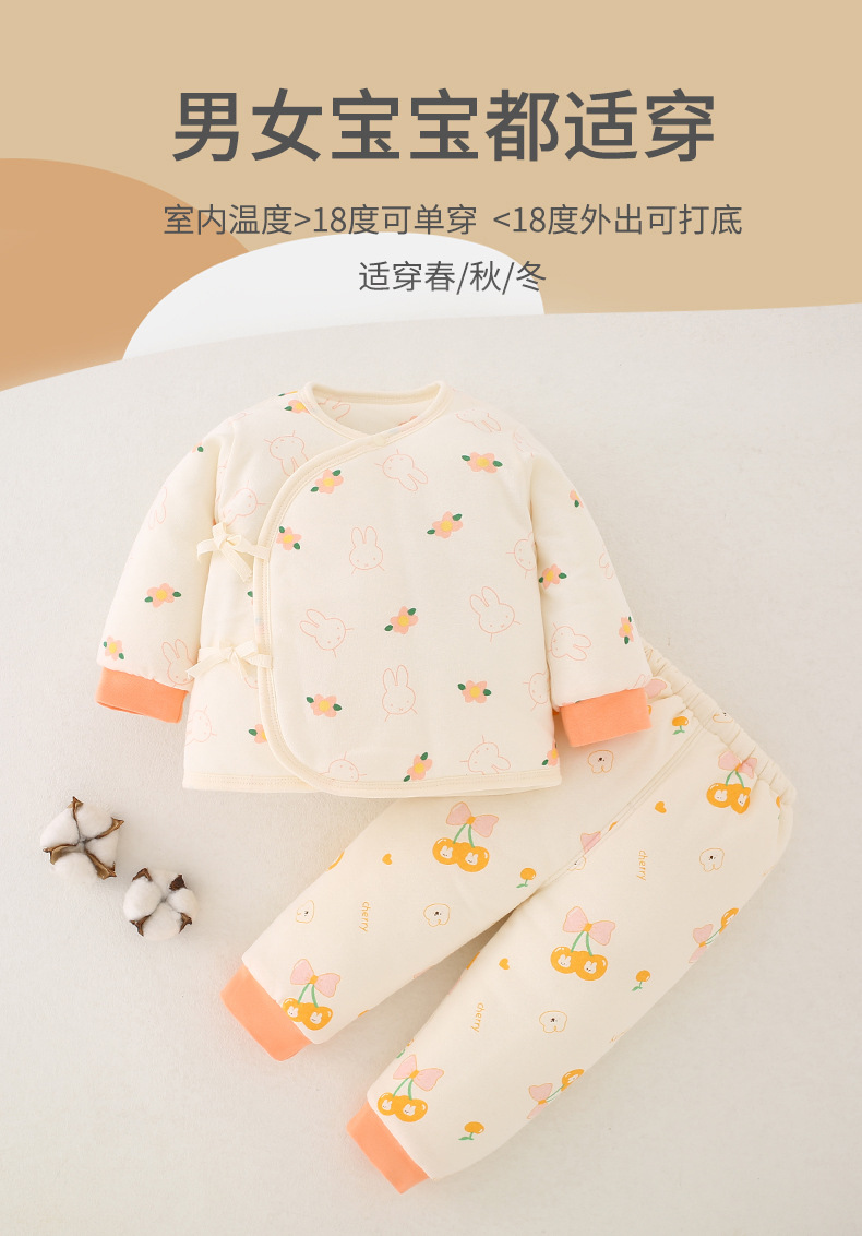 【新生儿双层护肚夹棉保暖分体套装】婴儿棉衣冬款新生儿衣服纯棉A类保暖内衣夹棉宝宝棉服和尚服套装