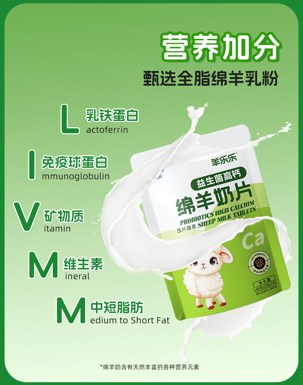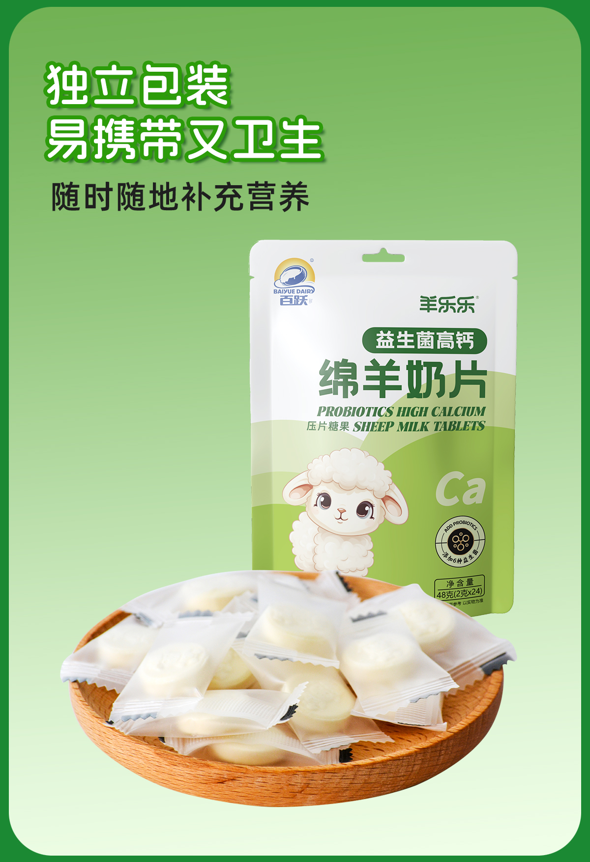 百跃 羊乐乐益生菌高钙绵羊奶片48克 独立包装