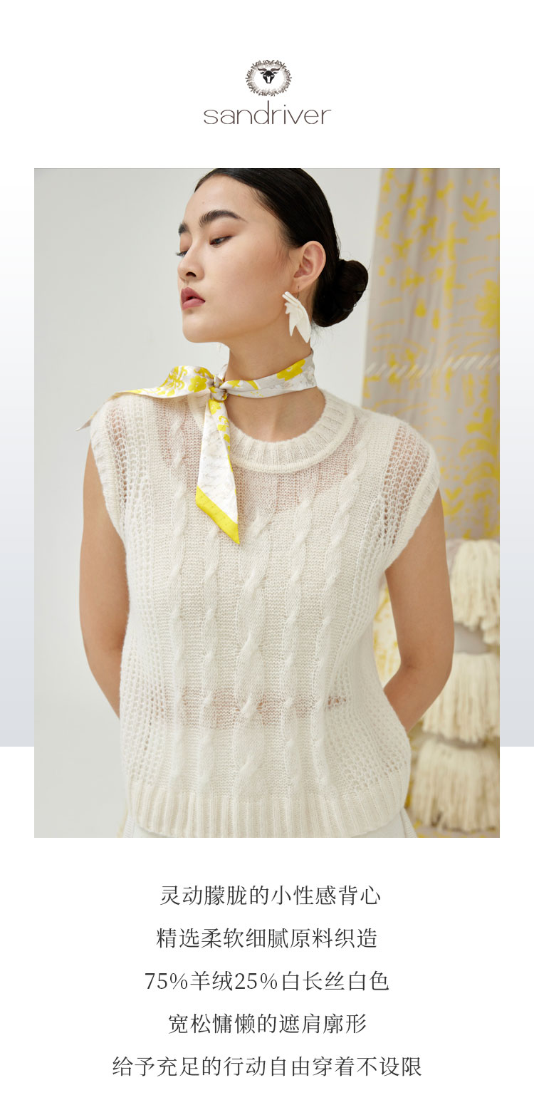 历年在巴黎时装周亮相,享誉世界的艺术羊绒品牌[Sandriver 沙涓]由羊绒布道者郭秀玲女士创立。阿拉善自有牧场纯种羔羊绒,日本国宝设计师小筱顺子,上海自有基地精工细作。承载羊绒情怀,坚持匠人品质。