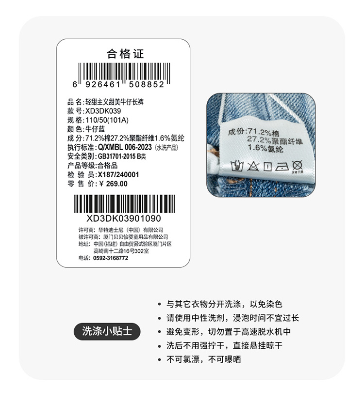 迪士尼女童牛仔长裤XD3DK039