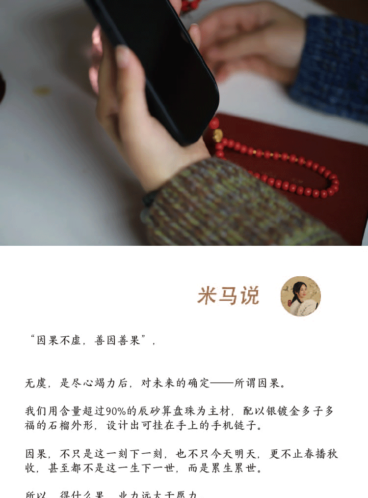 米马设计 无虞 含量超过90%的辰砂珠手机链 “因果不虚,善因善果”