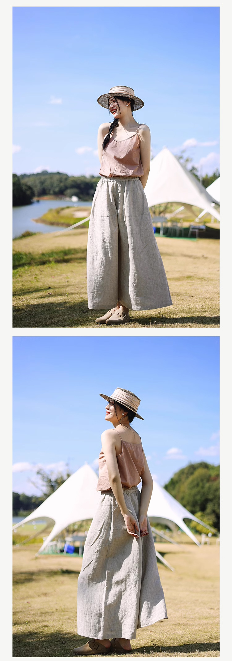 以天然亚麻为载体,融合热烈色彩与自在剪裁为身在城市、心怀远方的女性提供兼具美学与舒适的旅行着装