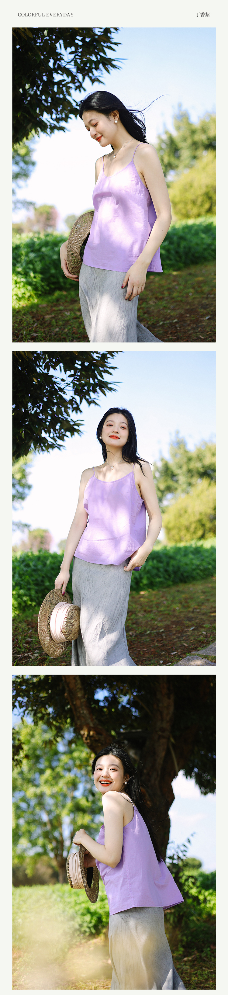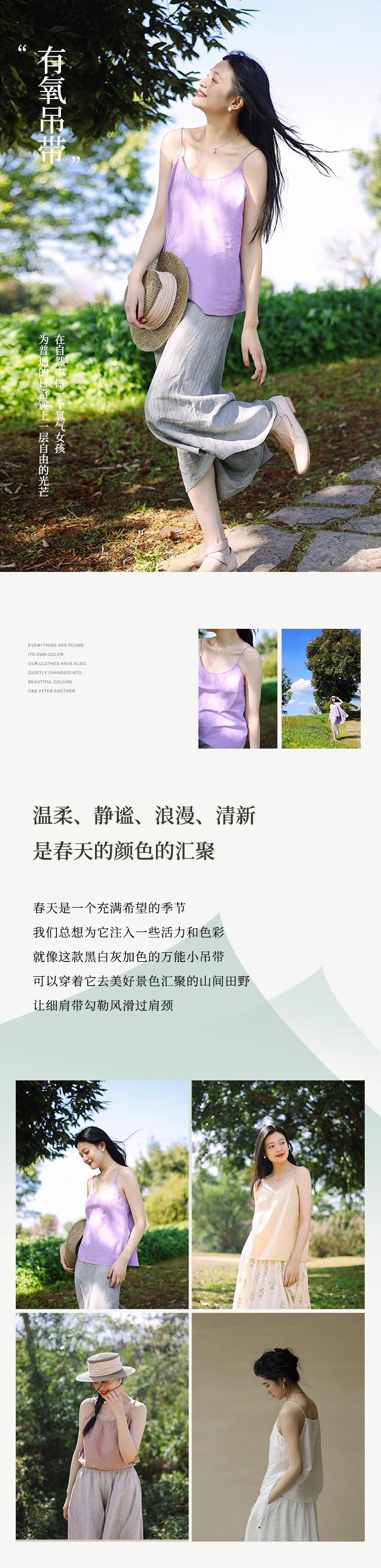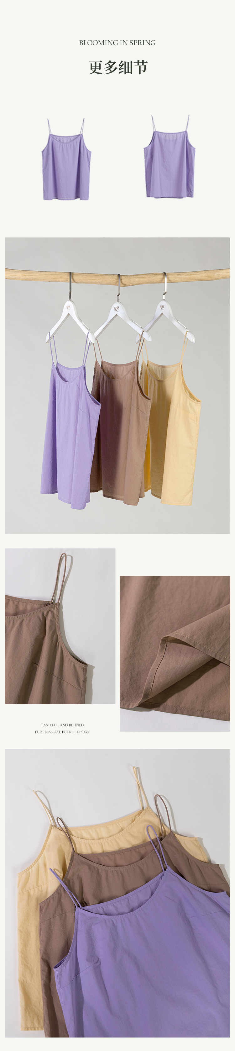 绽放578+165朵【黑白灰系列·月光集】有机棉显瘦wan能简洁吊带打底衫