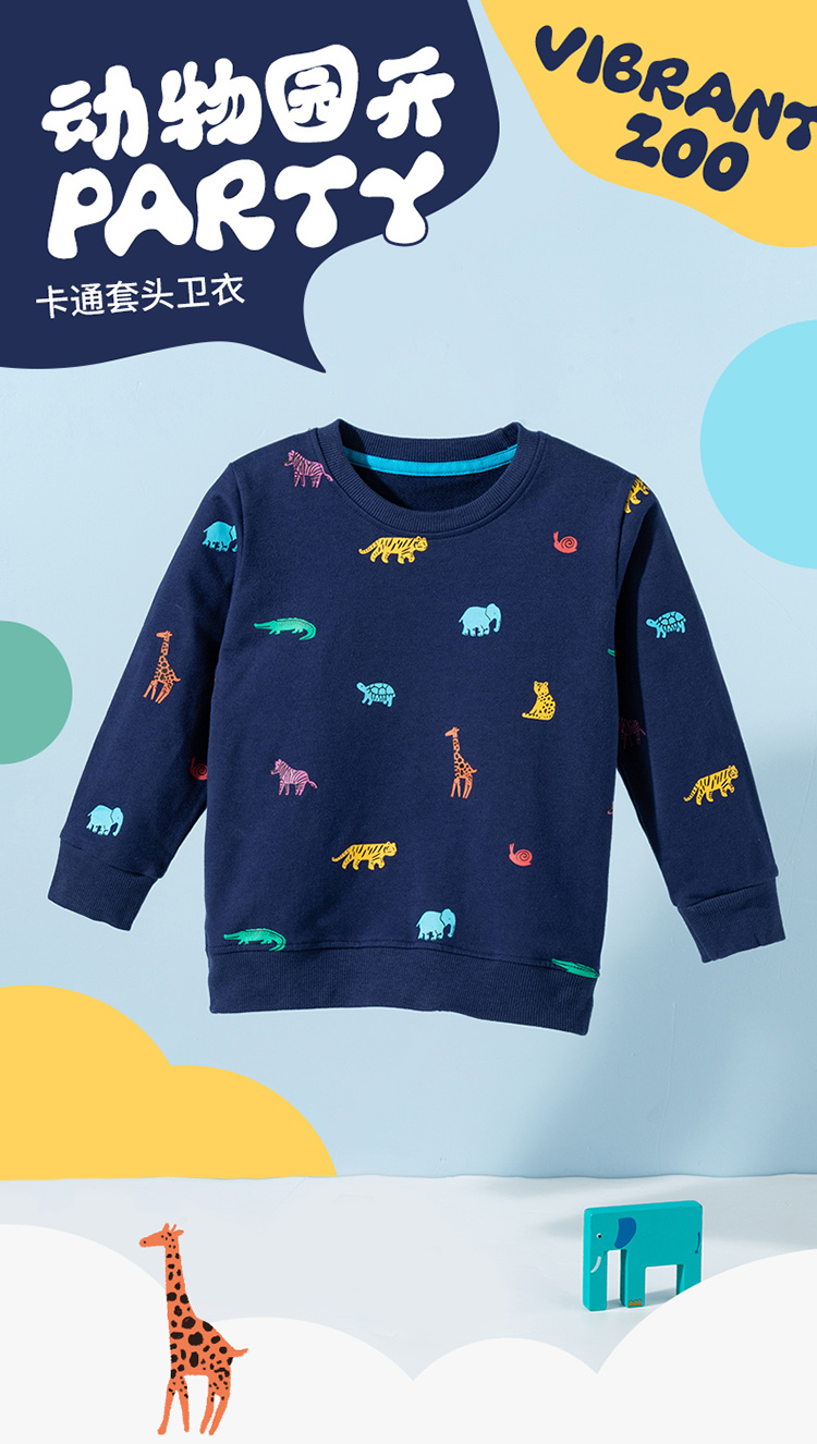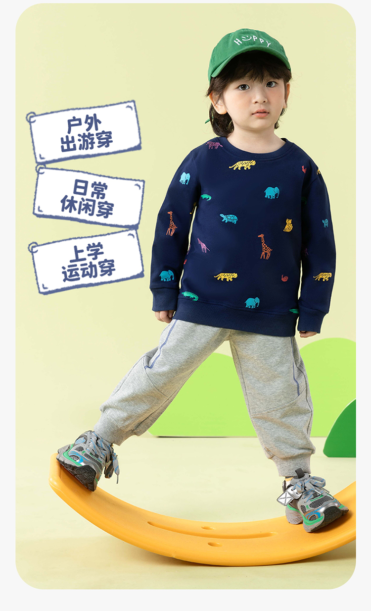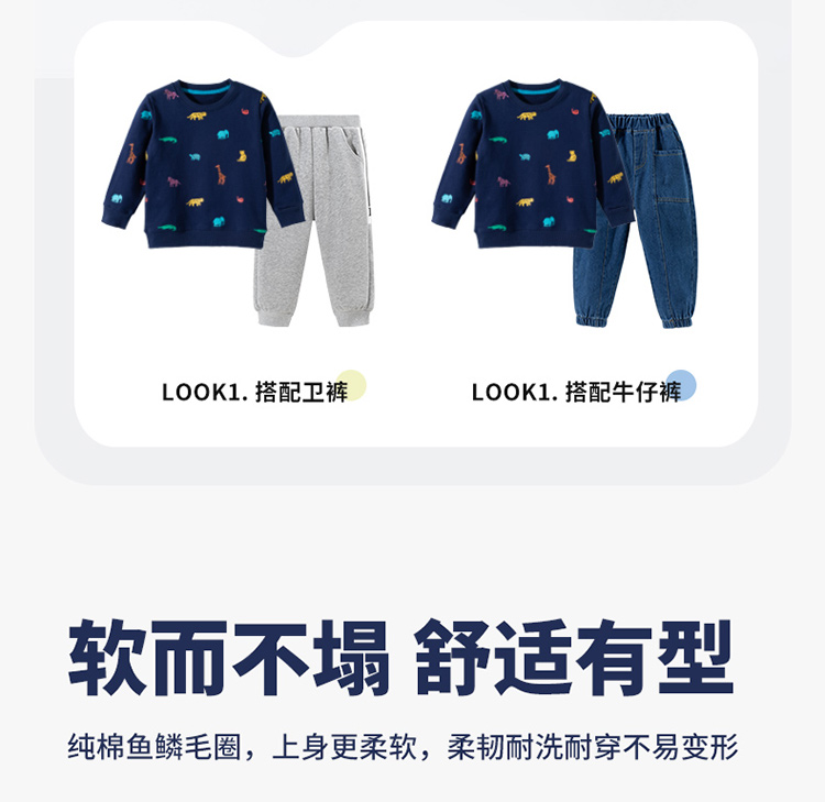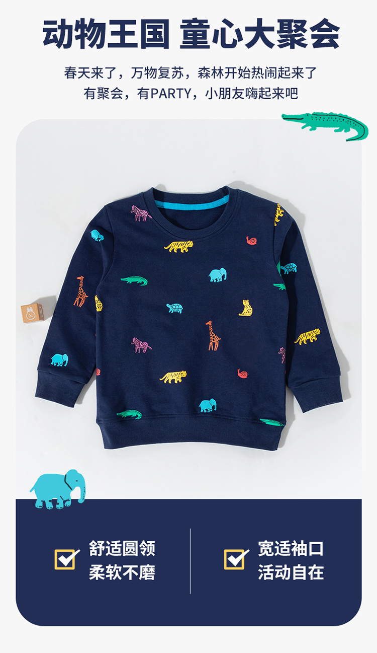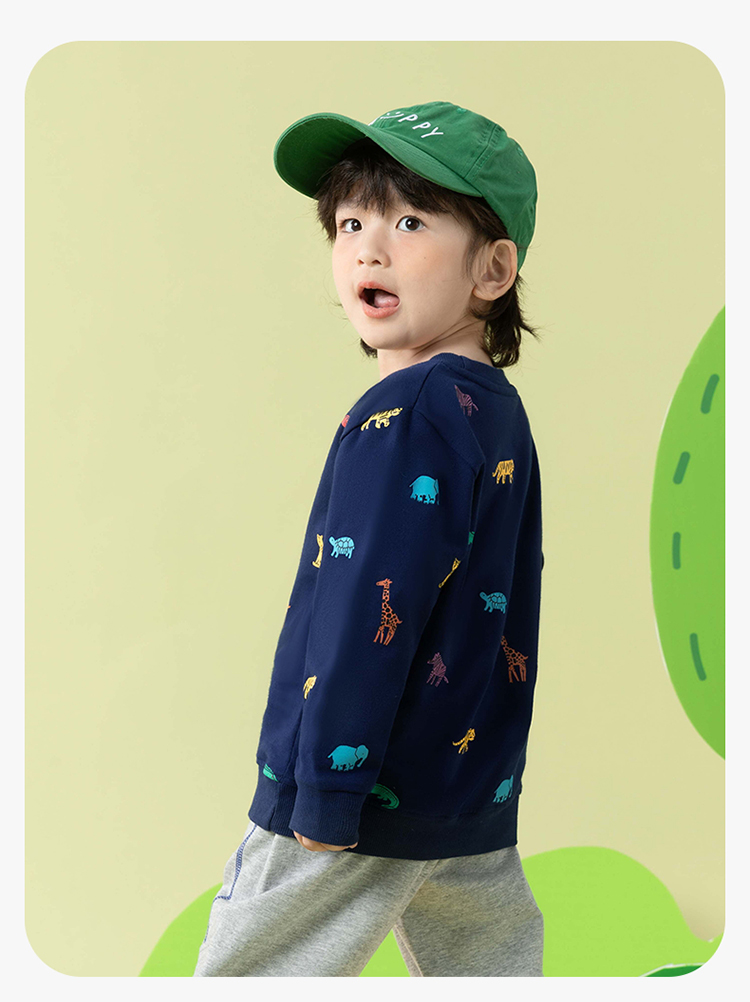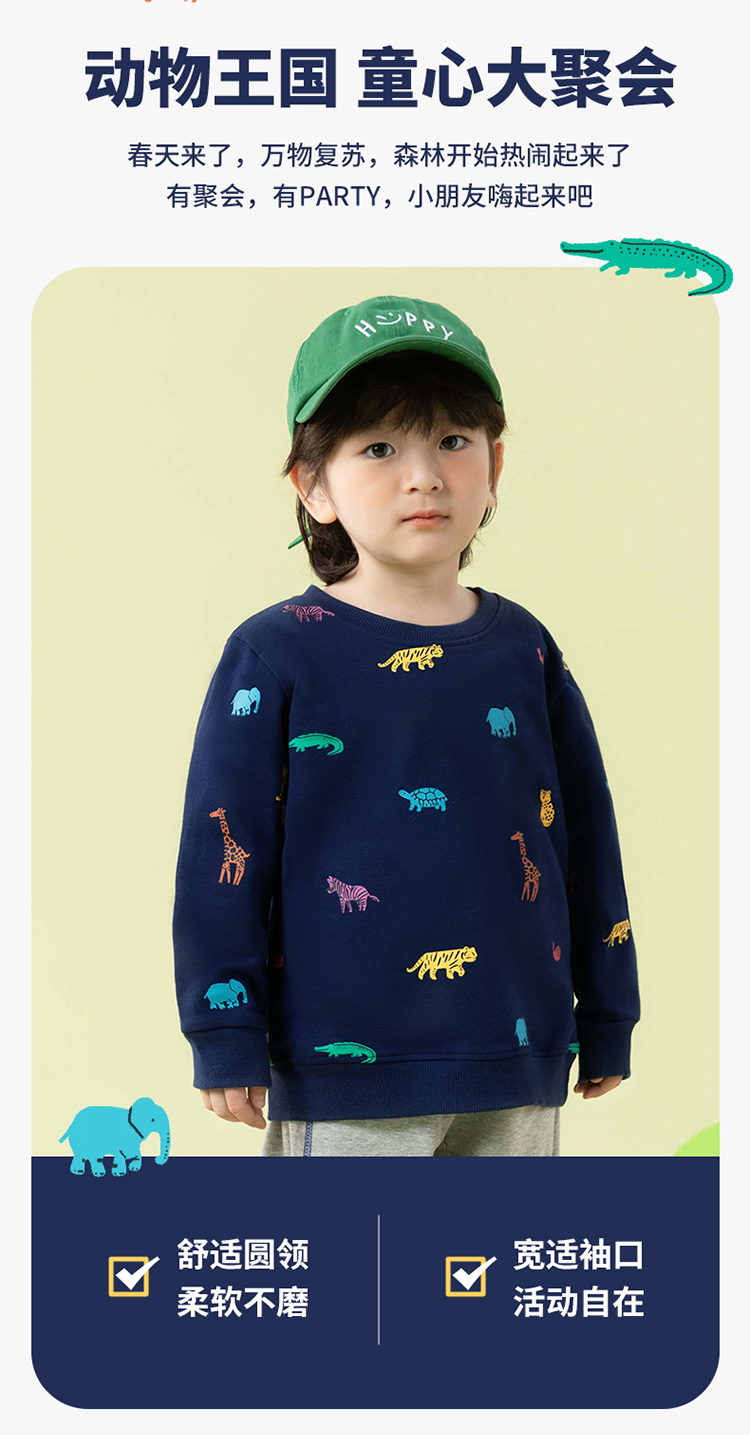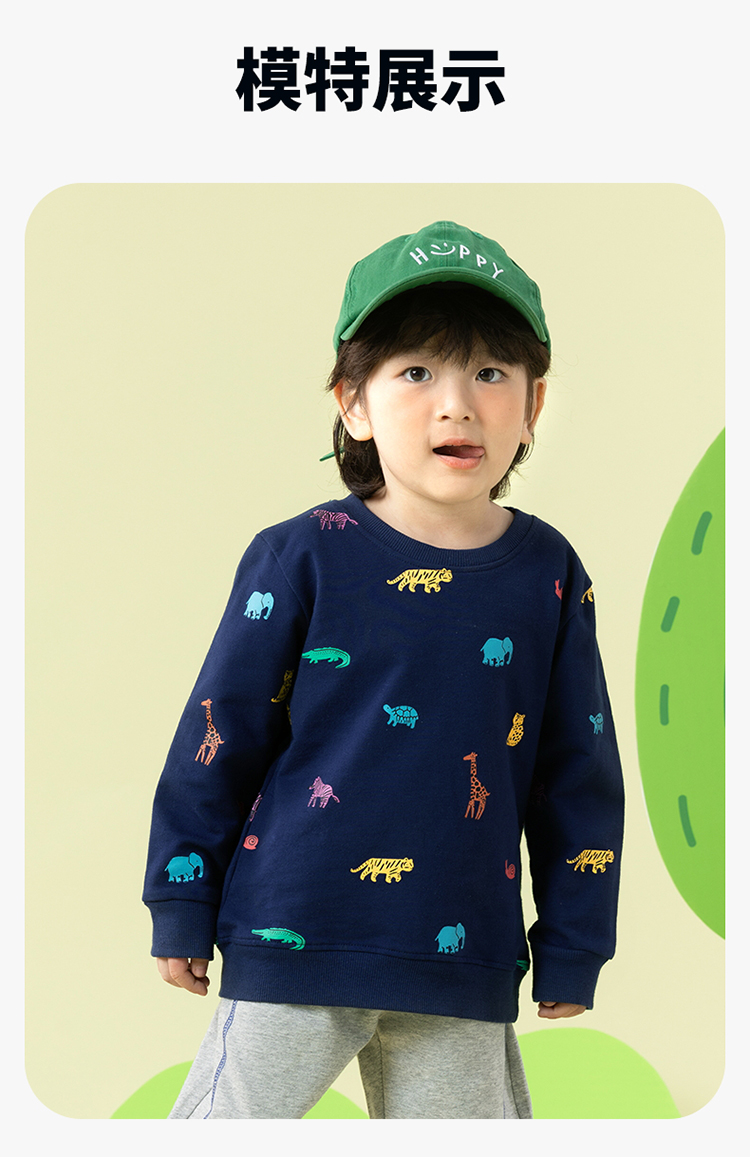 贝贝怡童装男童休闲卫衣纯棉儿童长袖打底衫春秋新款全棉套头衫ZB1ES031