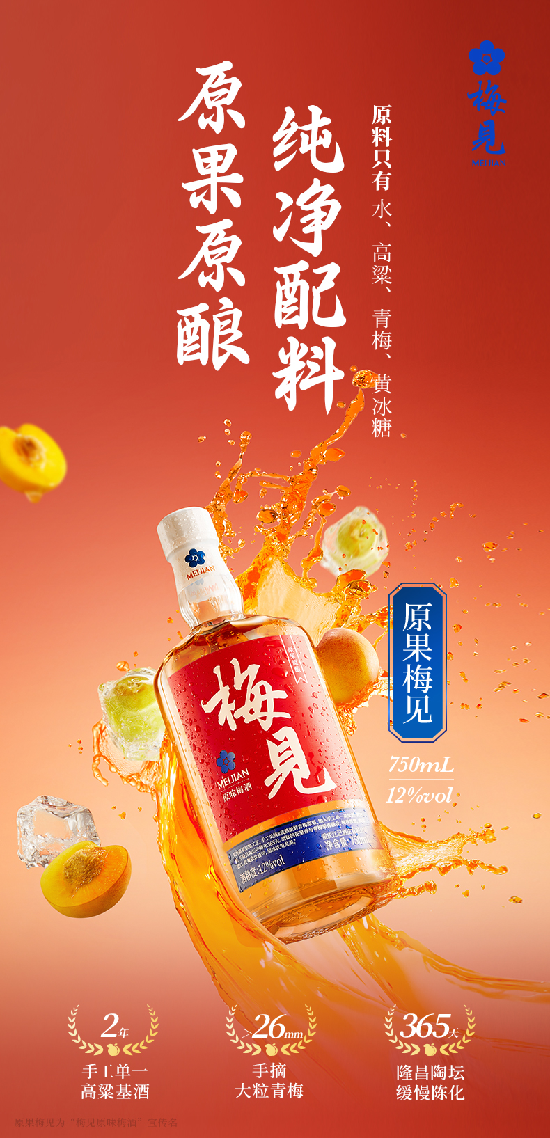 梅见原果原酿青梅酒12度750ml低度甜酒微醺梅子酒原味果酒