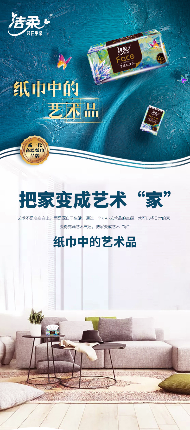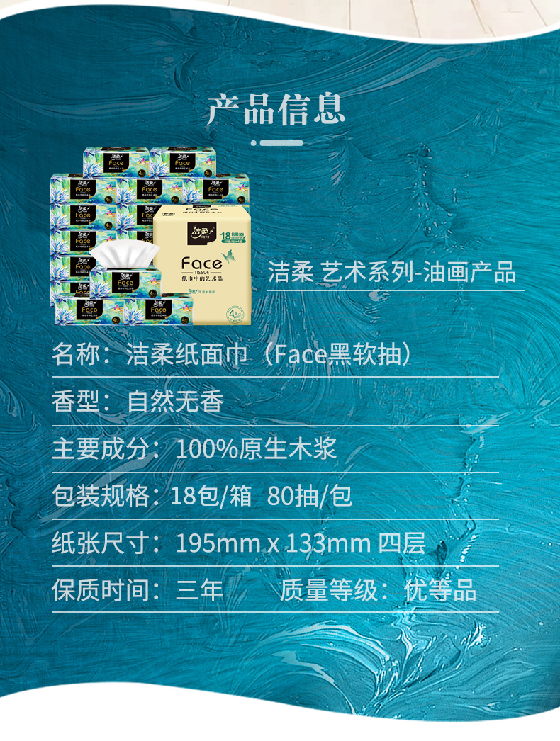 洁柔抽纸Face油画风加厚纸巾4层80抽18包餐巾纸面巾纸餐纸整箱