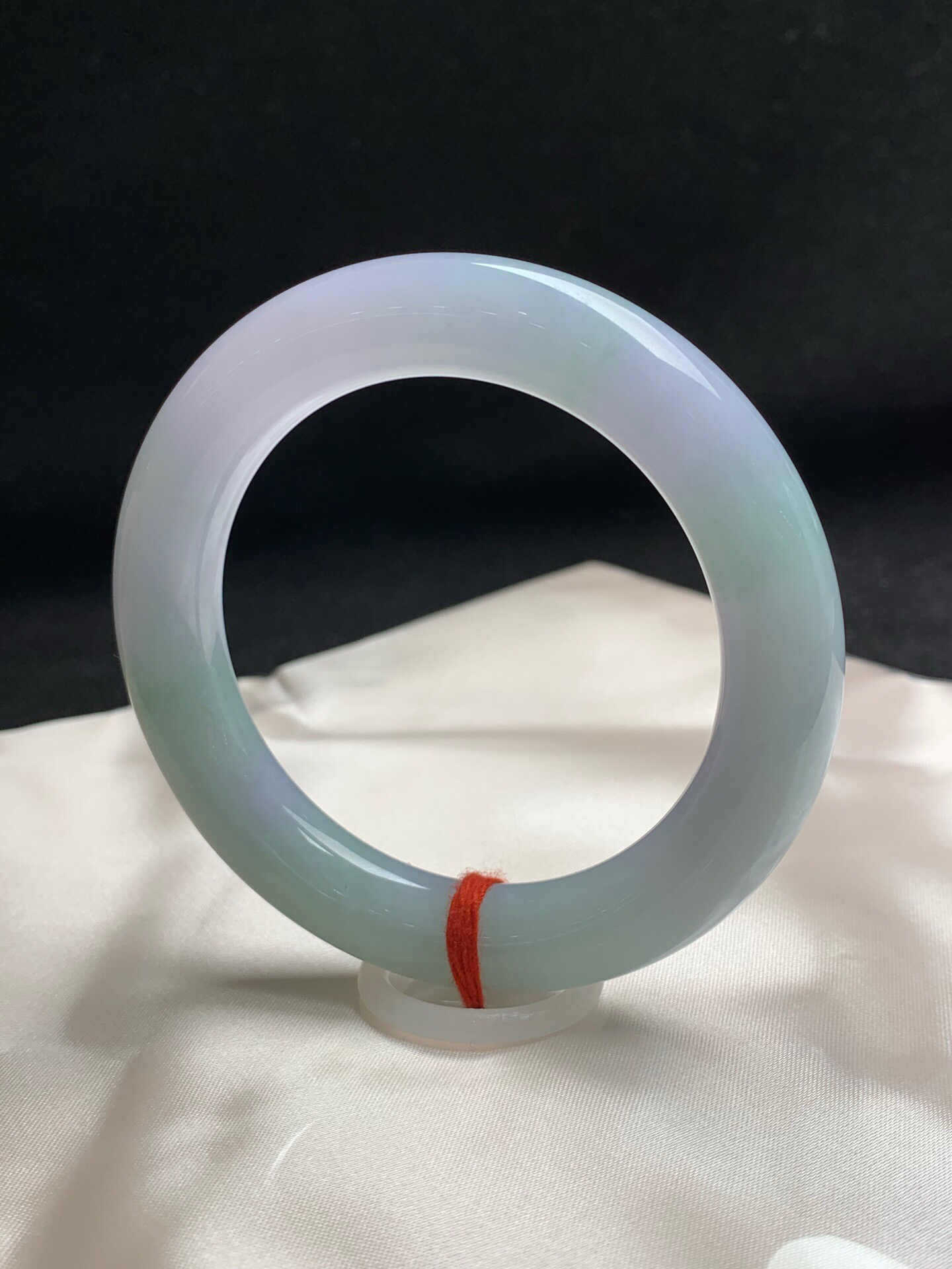 620045,56.6圈口,糯化春彩圆条福镯,种老水足,底子细润,粉紫底飘绿,整体清爽,完美无裂,尺寸:56.6-12-11.7,超值价💰31500 #优石客珠宝#香玉荟萃