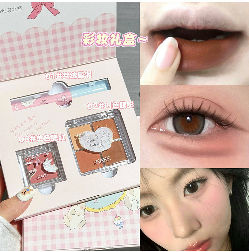 【粉丝福利❗️KAKE萌趣乐园彩妆套装】介才是女生期待收到的礼物叭,唇泥、眼影、腮红三件套,好看实用不出错~礼盒显白唇釉眼影腮红学生口红唇膏礼物情人节礼物