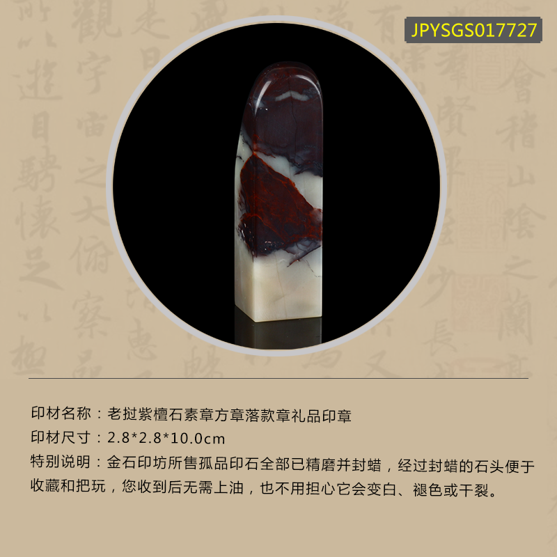 孤品17727老挝紫檀石素章方章落款章礼品印章 -2.8*2.8*10.0cm