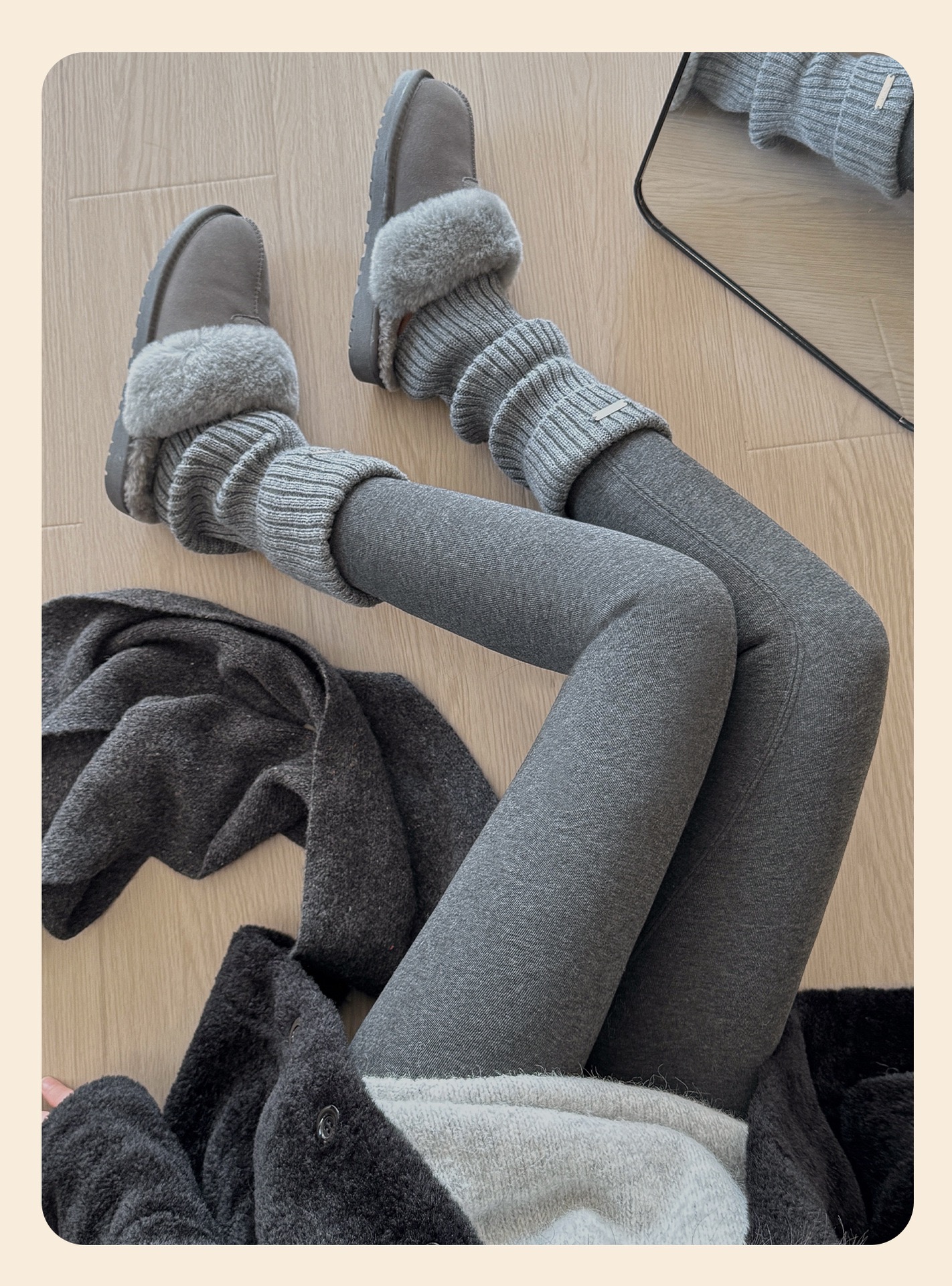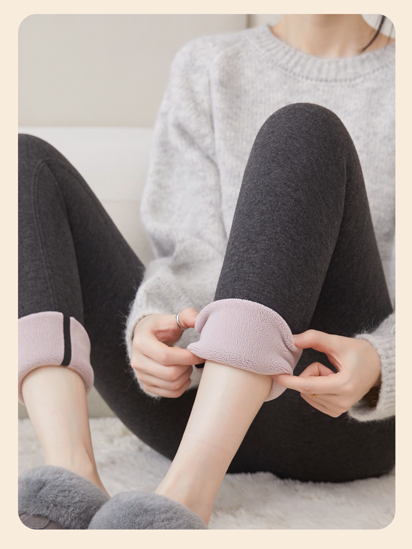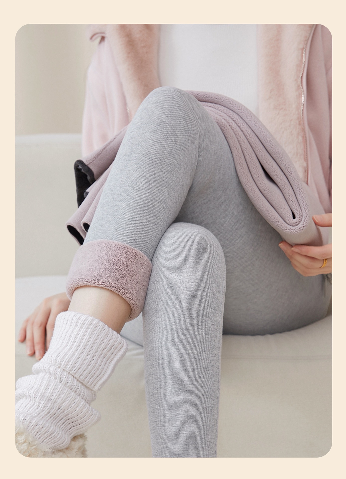 加绒特厚780克密密绒抗寒羊羔绒冬季新款外穿保暖裤女平纹打底裤MX
