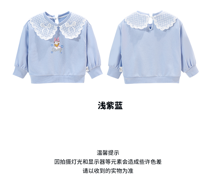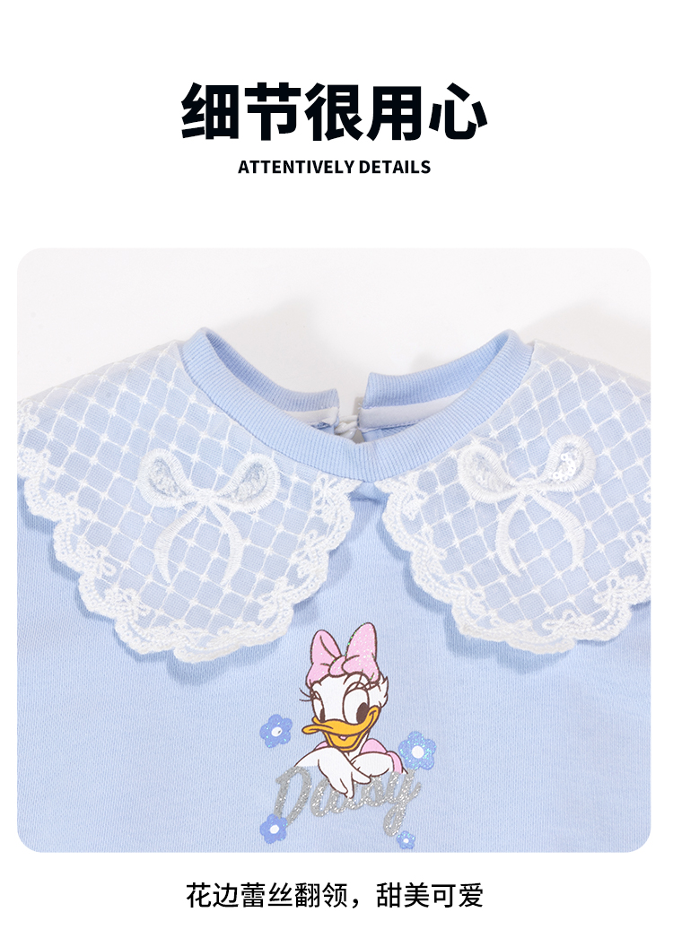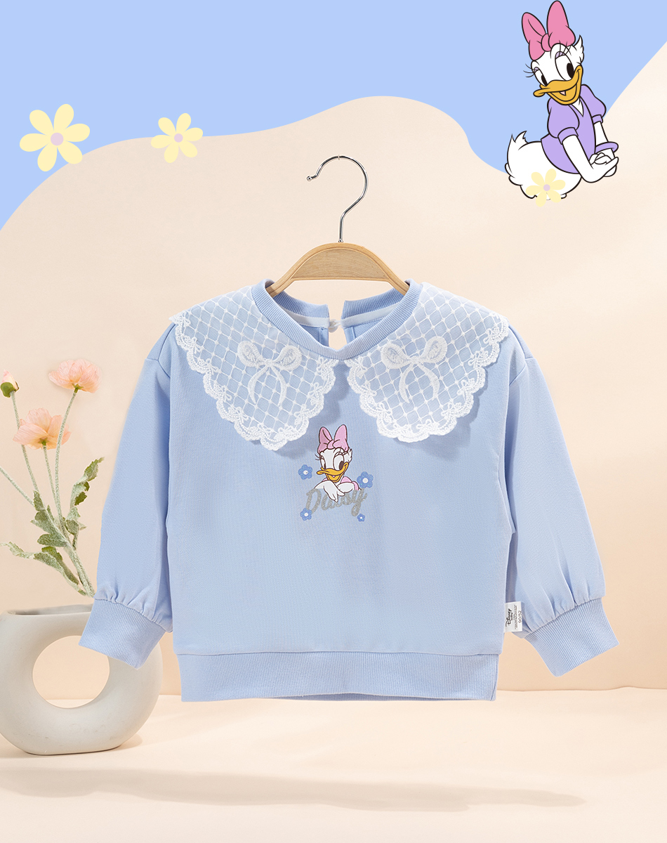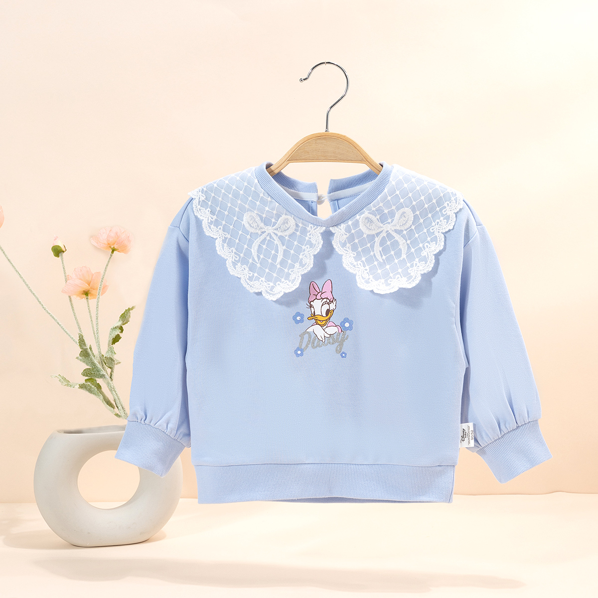 迪士尼童装女童甜美套头卫衣春秋新款黛西宝宝卡通花边蕾丝娃娃领ZD3DS004