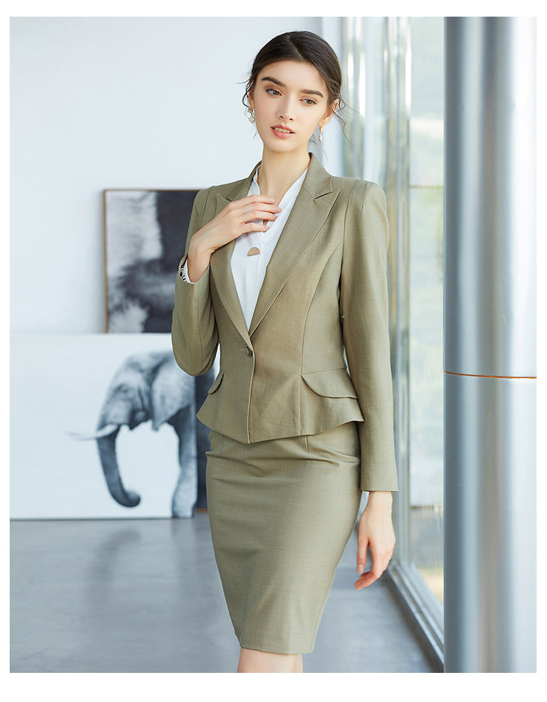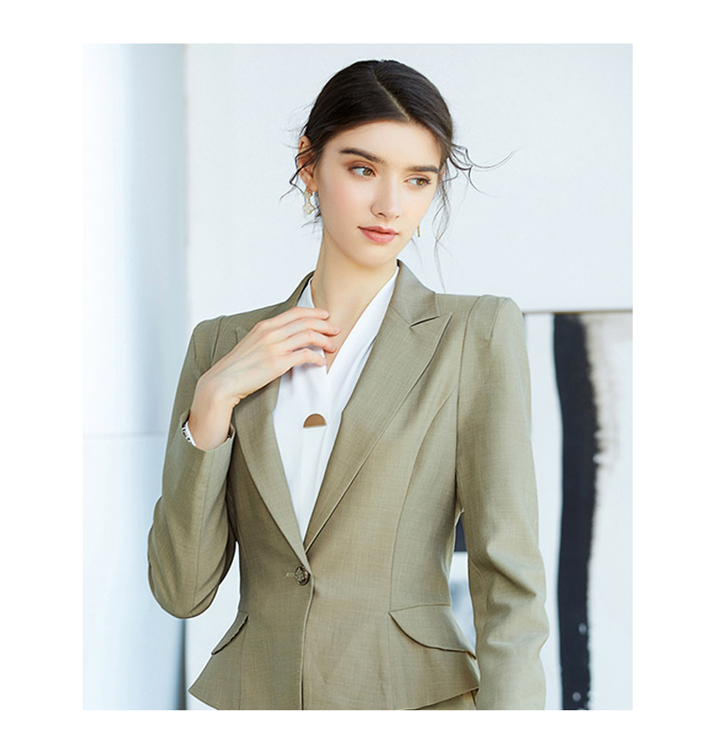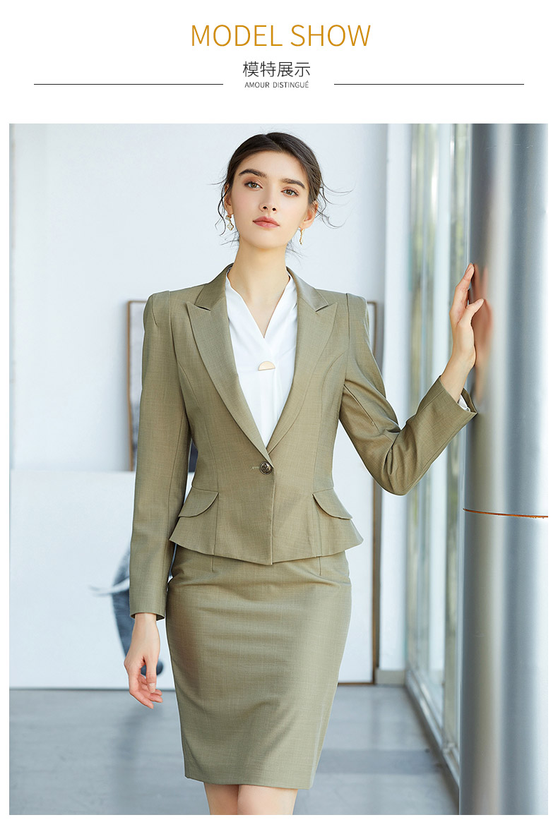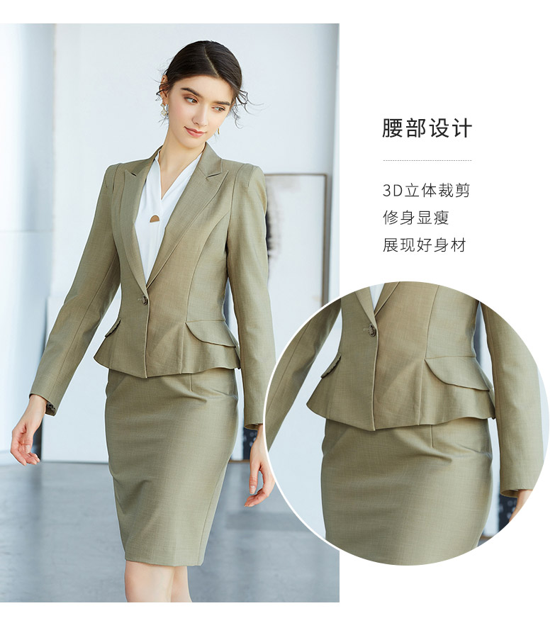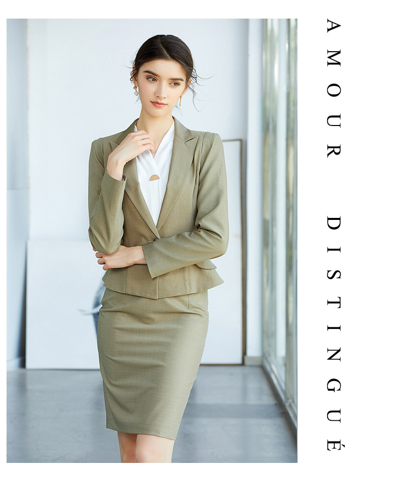 AD春季灰绿色时尚垫肩西装套裙简约职业装上班气质OL修身商务套装