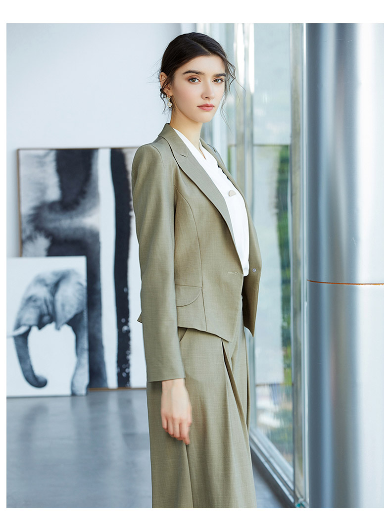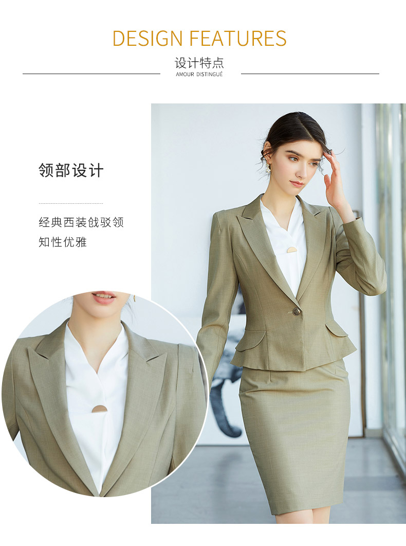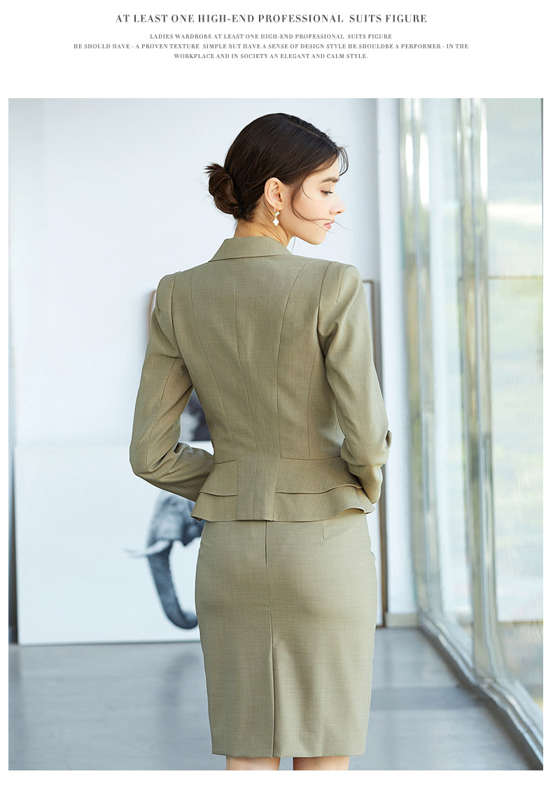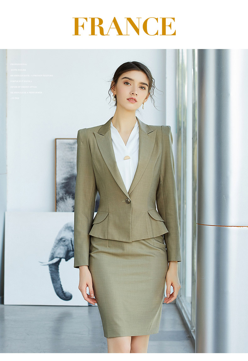 AD春季灰绿色时尚垫肩西装套裙简约职业装上班气质OL修身商务套装