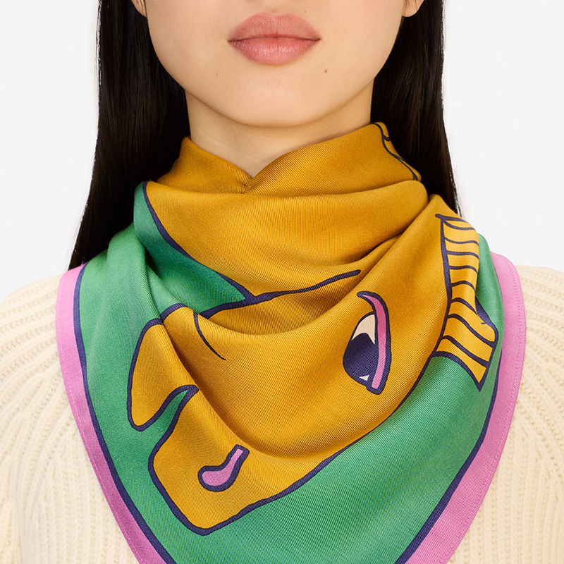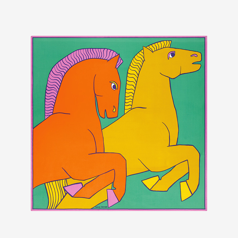 订购6周到|Inoui Editions-100 CAVALE-两匹马 绿色 方巾[法国设计师]