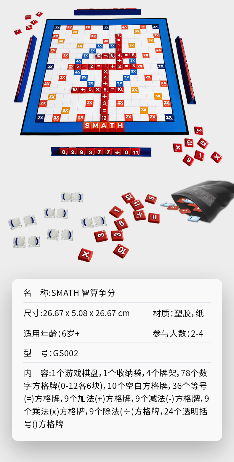 快慢狐smath智算争分 儿童数学思维加减乘除运算益智桌游玩具6岁+