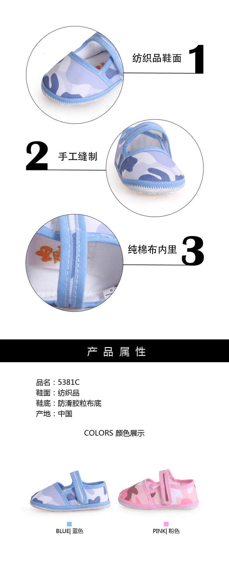 内联升童鞋粘帕儿防滑贴胶帆布宝宝迷彩一代5381C
