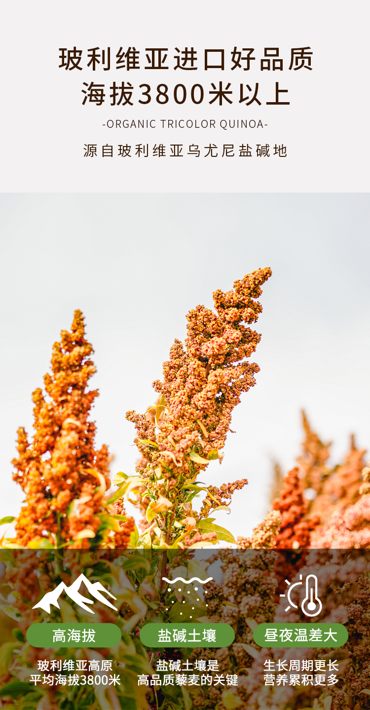 北纬纯净食品|38°玻利维亚高原有机三色藜麦500g
