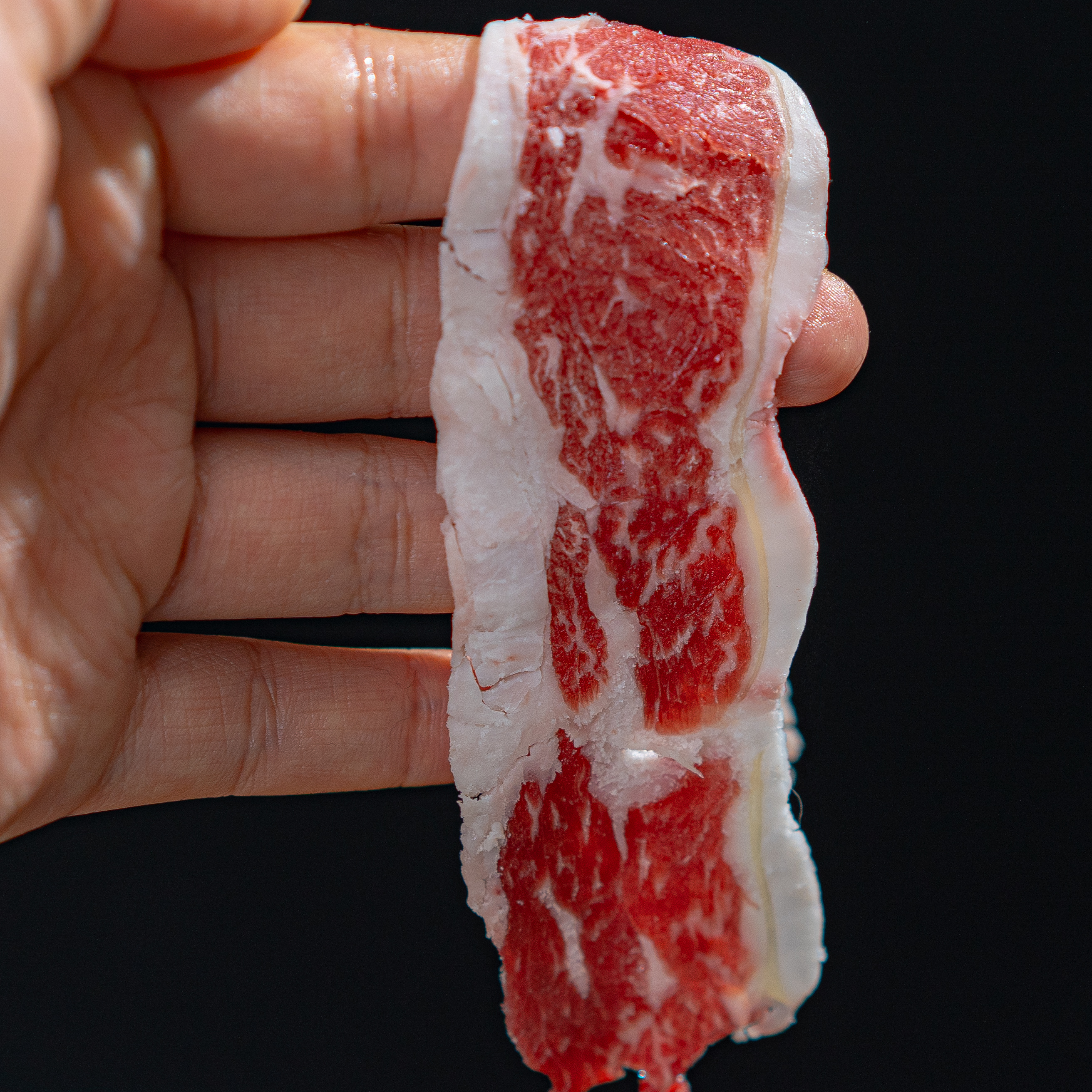 这款肉位于牛后胸腹部,一面脂肪,一面瘦肉,吃起来并不肥腻,有种DuangDuang的筋道,是和牛性价比部位,肉质嫩、巨香,丰盈的油脂感充分激发味蕾 带来绝妙体验!