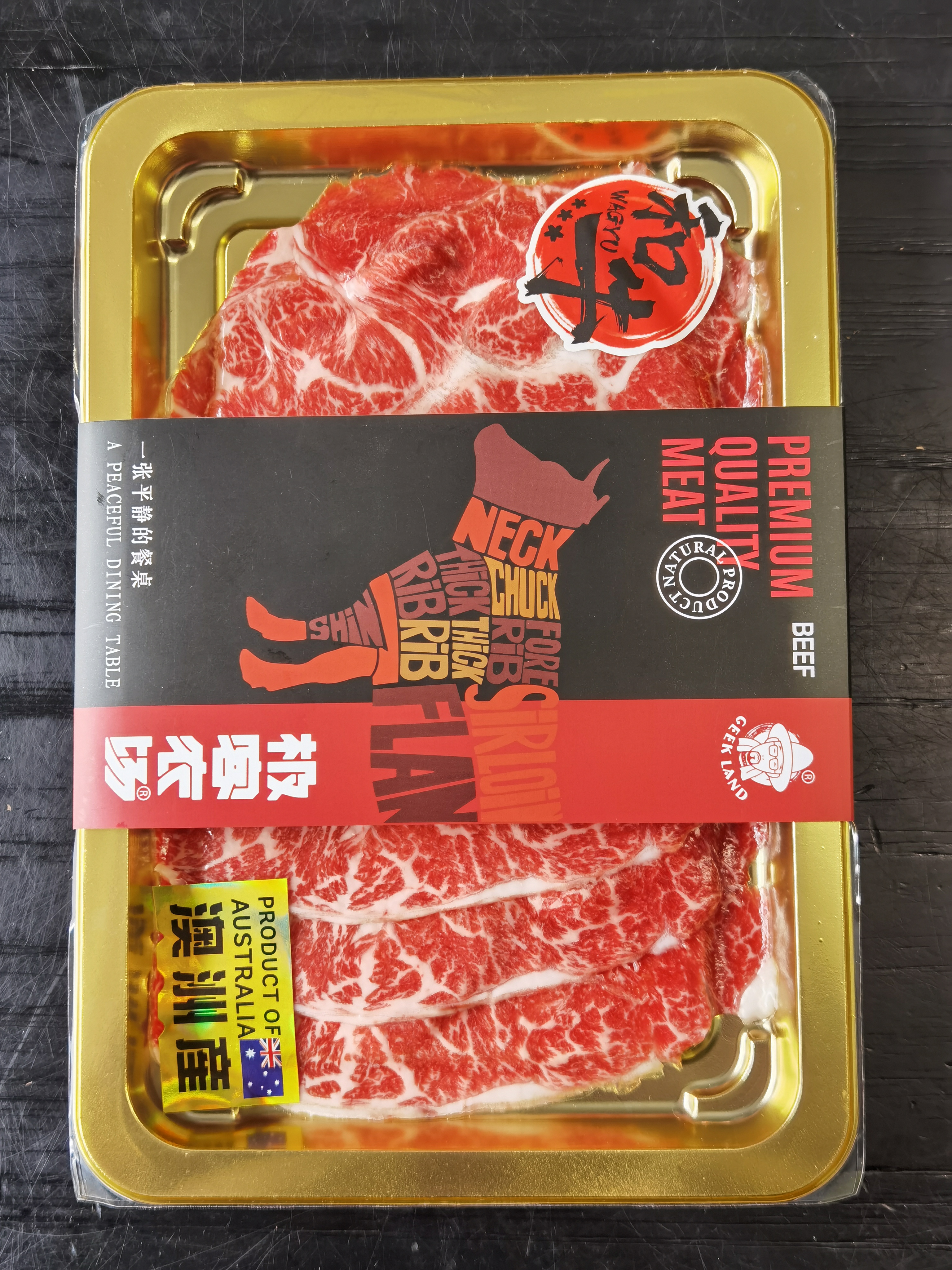 位于牛前肩胛部位的一块肌肉,它是寿喜锅的绝配!保乐肩的纤维较细,以瘦肉为主,口感细腻,略带筋道,牛肉风味浓郁,不油腻!