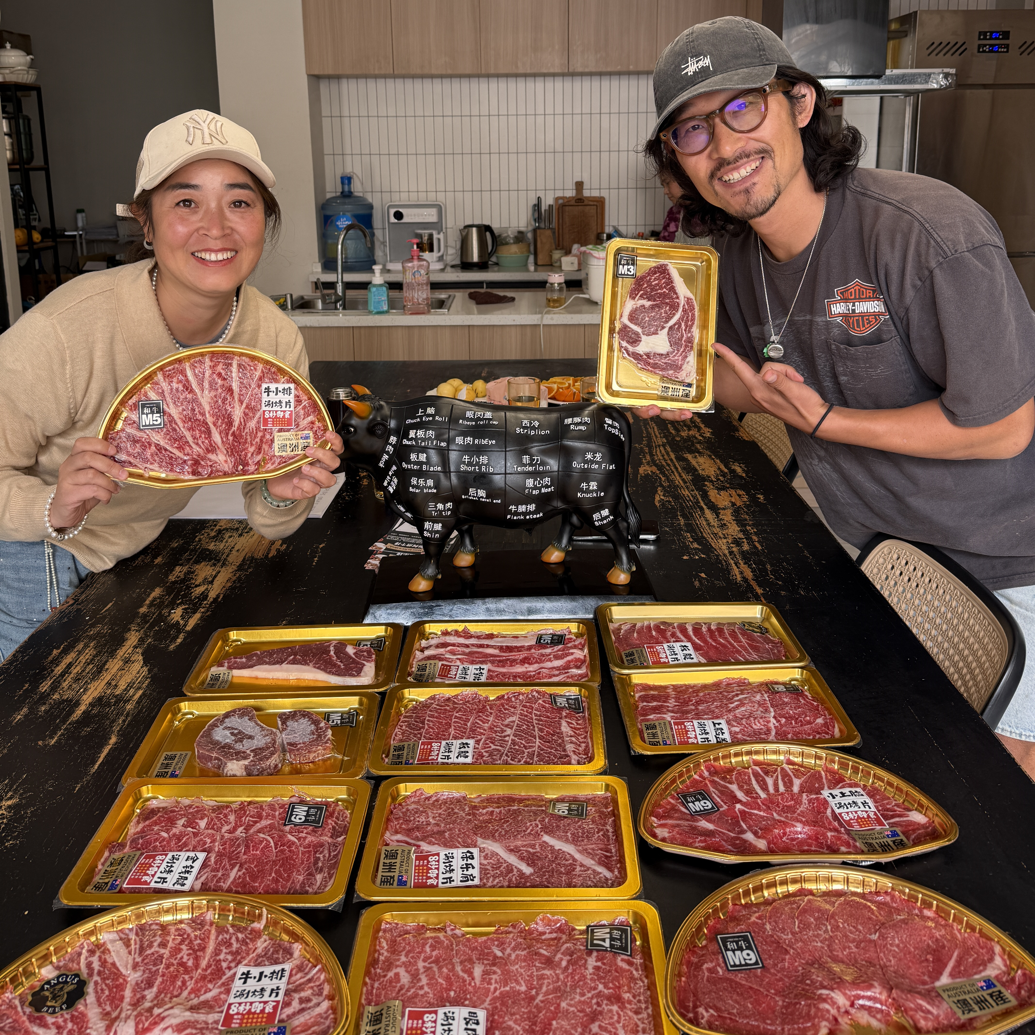 咱们选用的是更嫩的前腱--C腱, 肉里包筋、筋中有肉,筋与肉纵横交织呈现出铜钱状,切成薄片后口感有质的飞跃,既可以尝到和牛肉质的滑嫩,又可以享受筋花带来的Q弹咀嚼感!