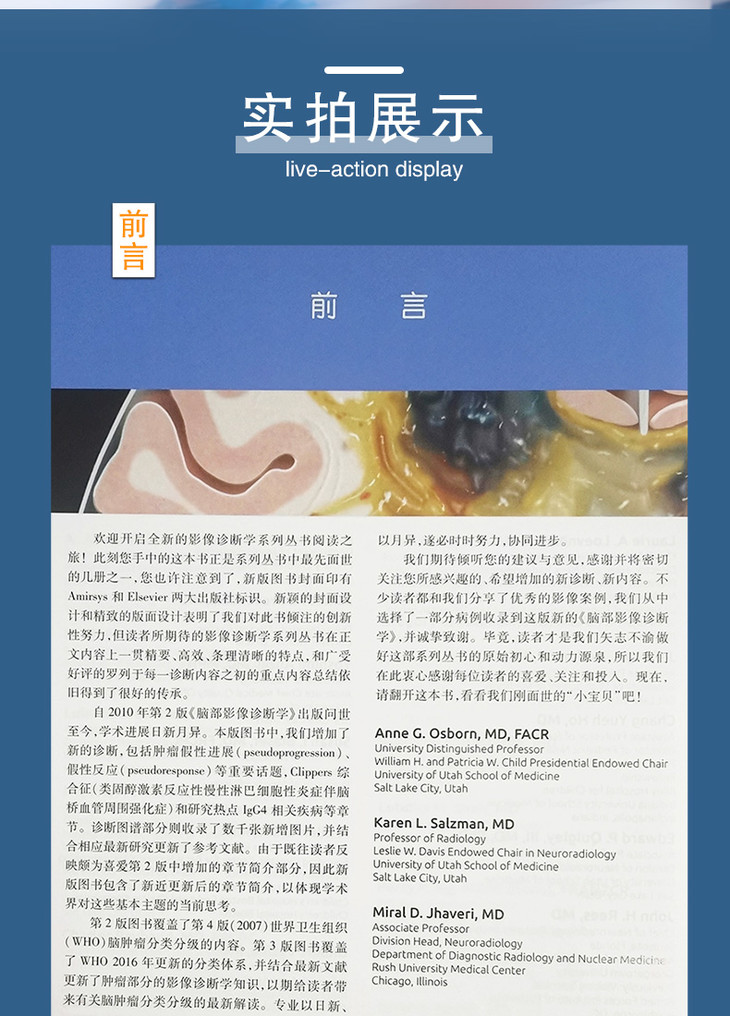 影像诊断在神经外科、头颈外科以及神经内科的疾病诊断中占有非常重要的地位,尤其在疾病的早期诊断中迅速定位、定损并引导急性期处理中,影像学图片具有准确、直观和适时动态的特点,在临床上不可或缺。本书分两篇十四章,提供全面理解脑部畸形、中毒/代谢性疾病、创伤、感染等325种临床脑部疾病的图表和病理图片,以丰富的图片、精准的要点窗格“手把手”地引*读者达到专业诊断的水平,并且经过连续两版优化,本书内容更加充实、成熟。
