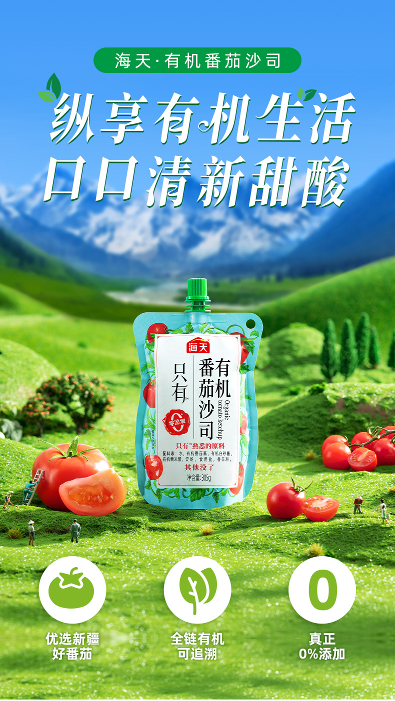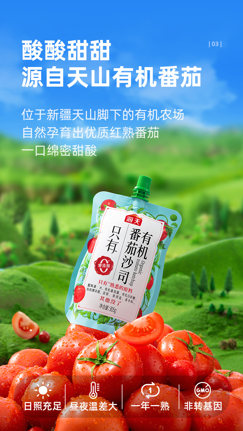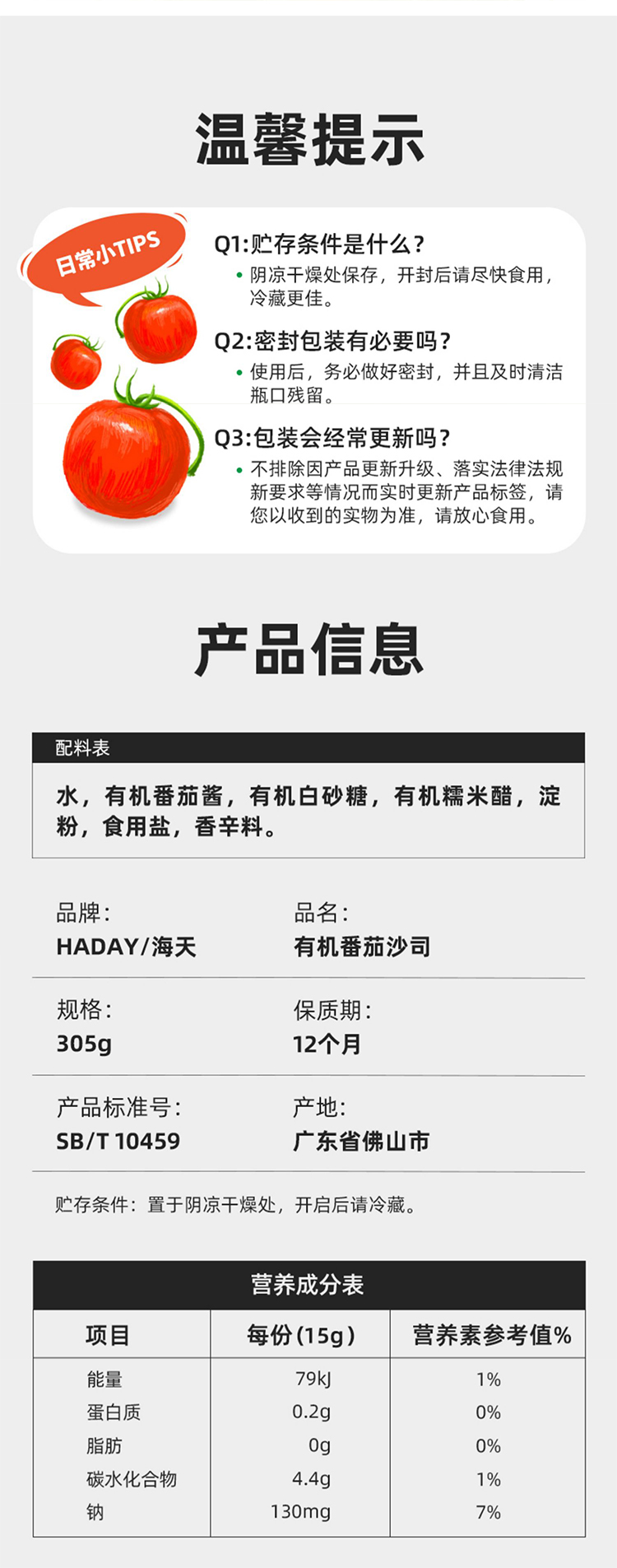 【1瓶包邮】海天有机番茄沙司305g 番茄酱