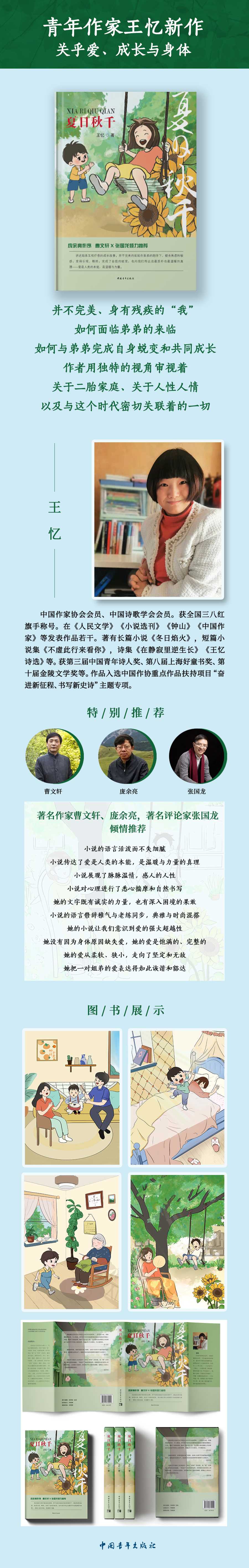 中国作家协会会员、中国诗歌学会会员、江苏省作家协会会员、泰州市作家协会特聘作家,荣获全国三八红旗手称号。作品在《人民文学》《小说选刊》《钟山》《中国作家》等发表。著有长篇小说《冬日焰火》,短篇小说集《不虚此行来看你》,诗集《在静寂里逆生长》《王忆诗选》等。荣获第三届中国青年诗人奖、第八届上海好童书奖、第十届金陵文学奖等。