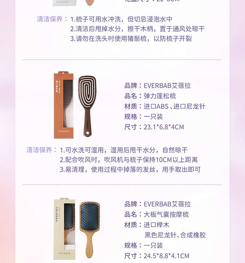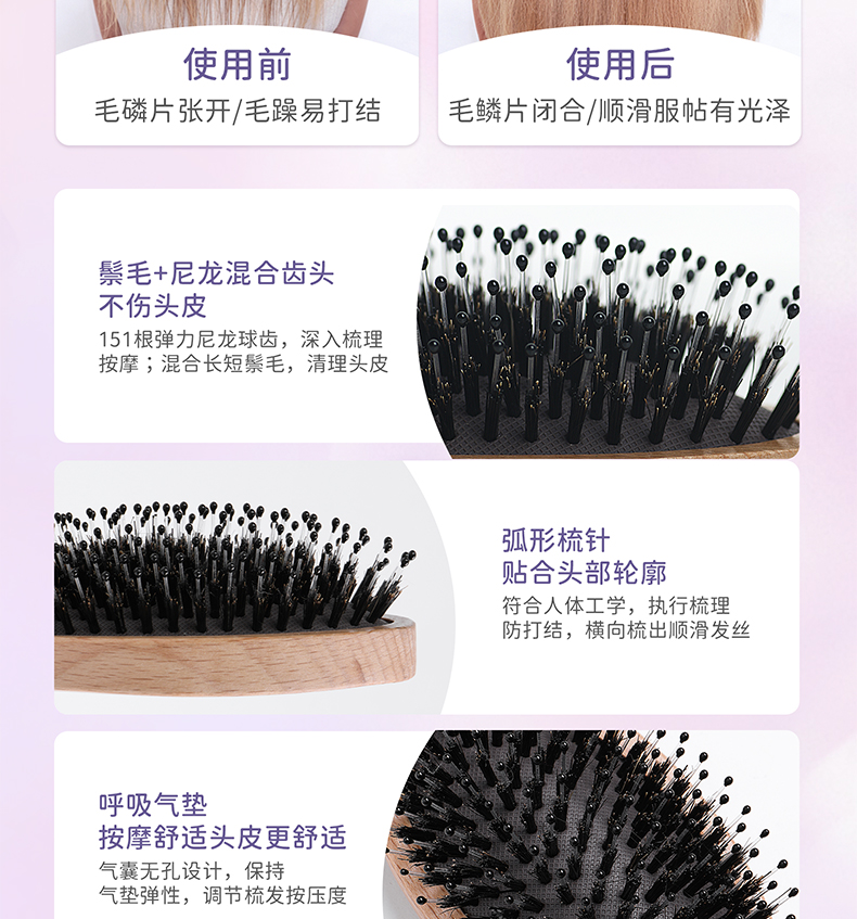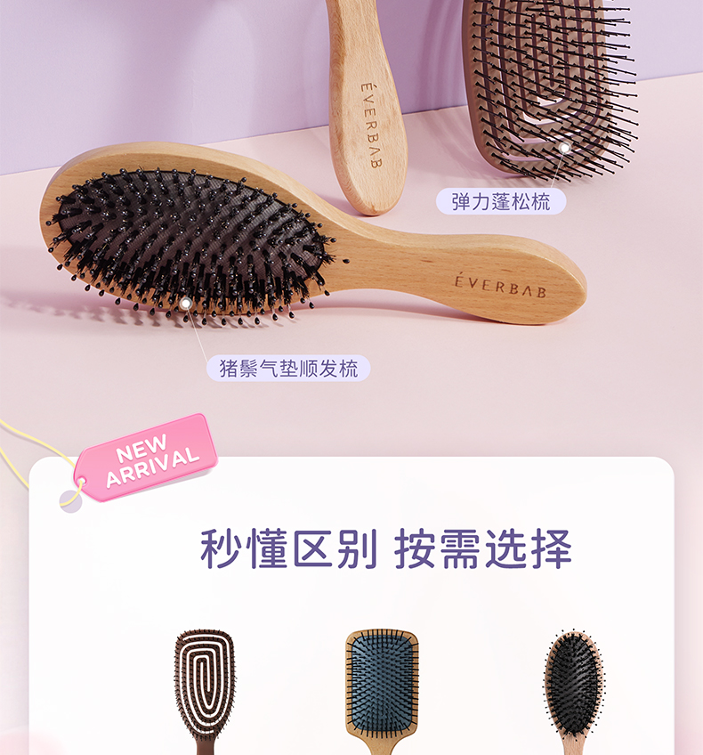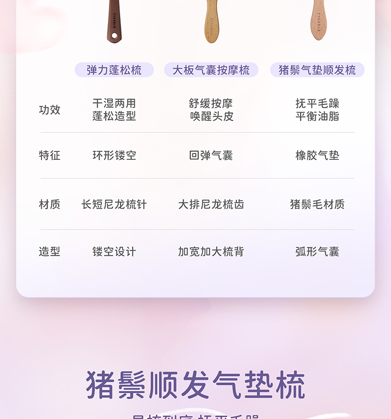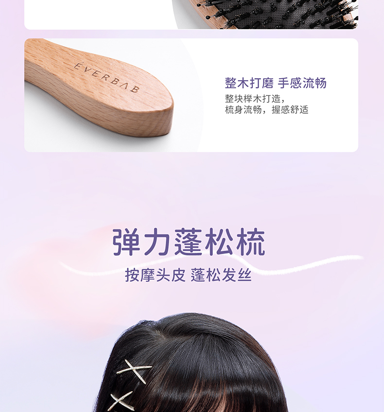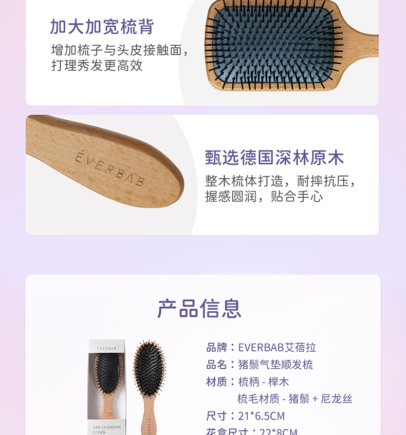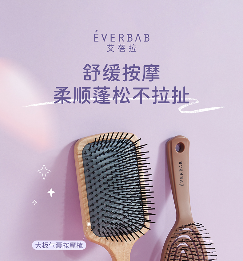 EVERBAB艾蓓拉 猪鬃气垫梳/大板气囊按摩梳弹力蓬松梳 多功能按摩梳