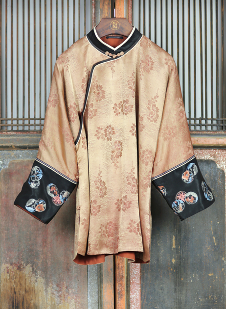 盛唐牡丹盛奢系列 | 真丝香云纱手绣斜襟上衣-杏仁色