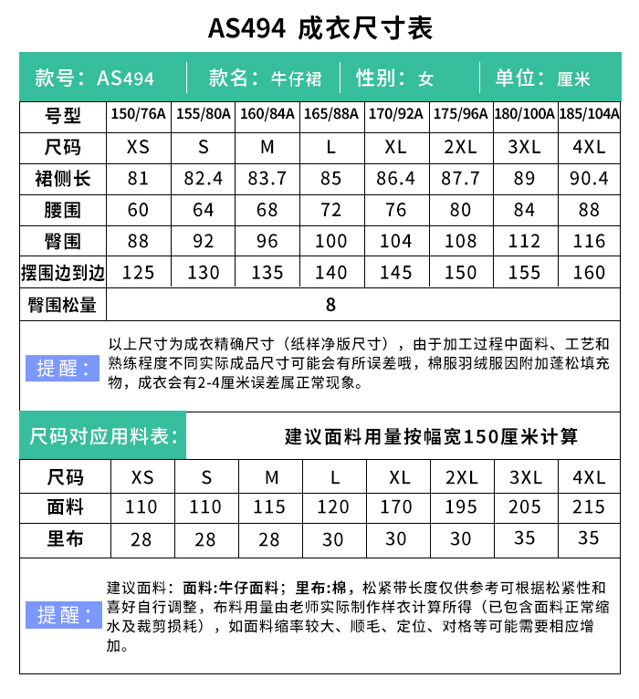 裁缝学苑AS494法式复古牛仔半身裙纸样女装不规则半裙样板图纸裁剪