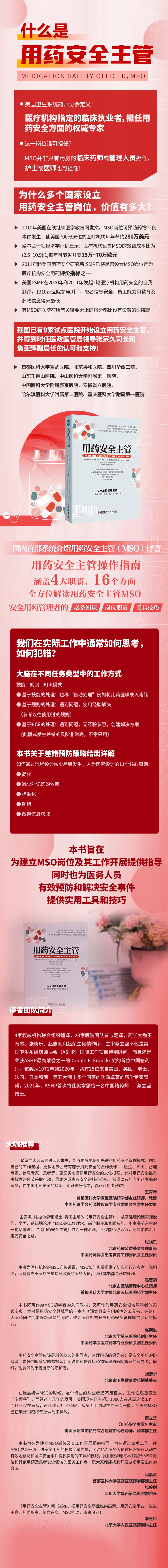 书中涵盖了所有用药安全领域的详细信息,从建立安全系统到处理人员问题,再到改进的策略、差错的上报和分析,应对不良结局的方法,以及样本表格、检查清单和其他实用工具,为MSO一职涉及的各个方面提供了专家指导。无论是对于刚接触用药安全的新人还是经验丰富的MSO,抑或是监督用药安全的药剂师和护士,本书都是重要的参考资源。