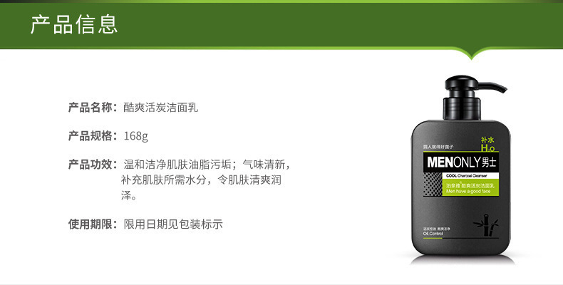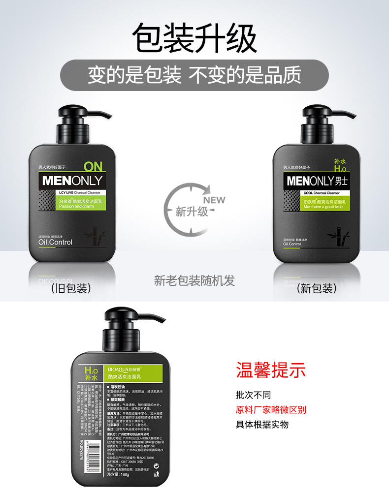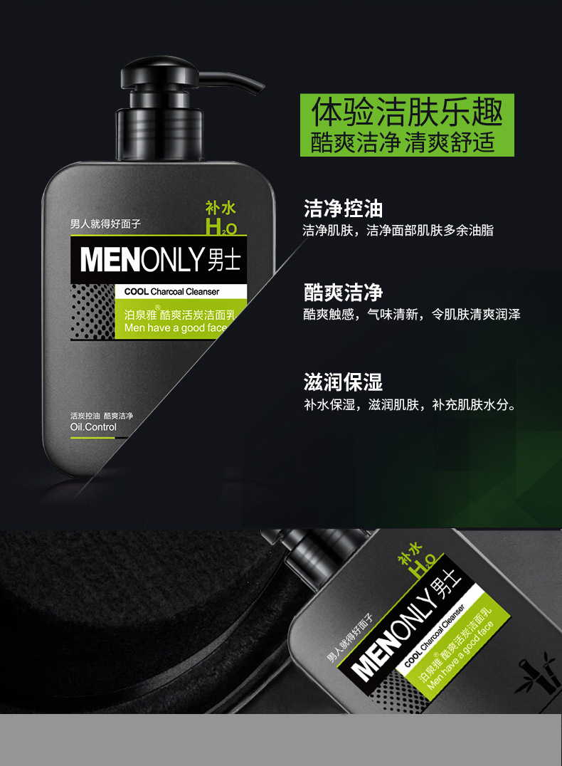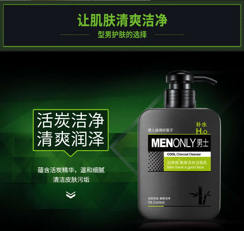【美妆个护】泊泉雅男士酷爽活炭洁面乳控油洗面奶深层清洁