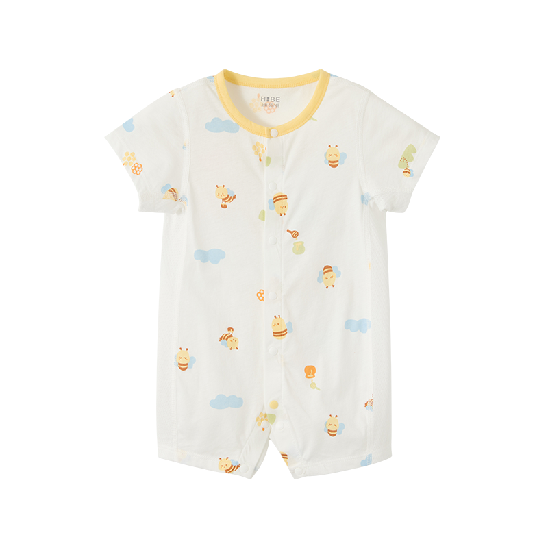 比萌蜂采蜜短袖开襟哈衣HY26SUN229白黄色调59#-90#