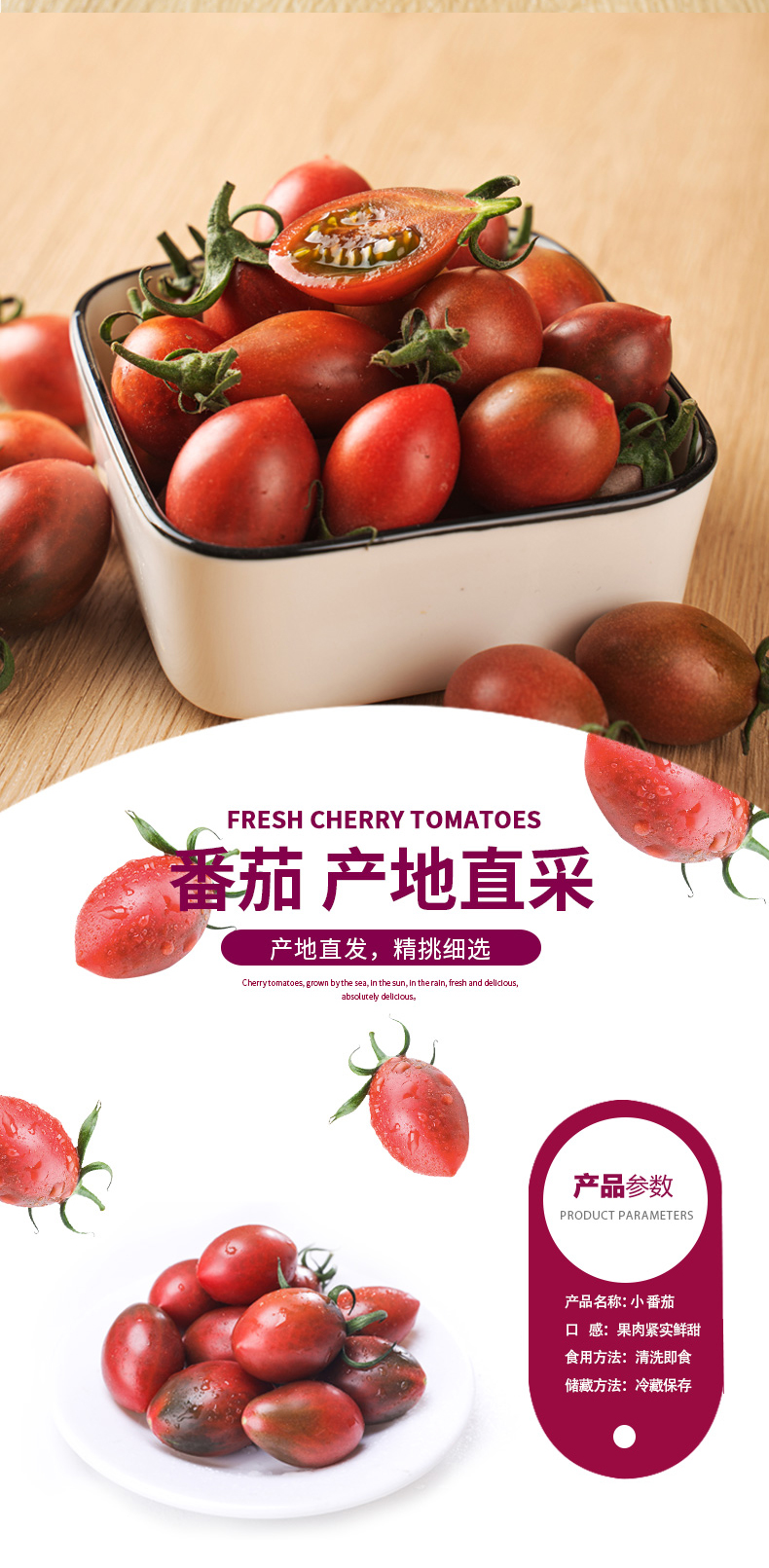 2、紫葡萄品种的小番茄为酸甜口感,硬脆爽口,介意者慎拍!