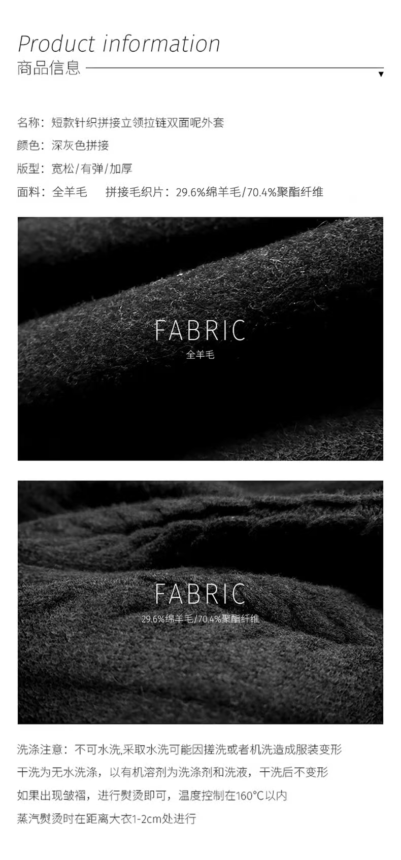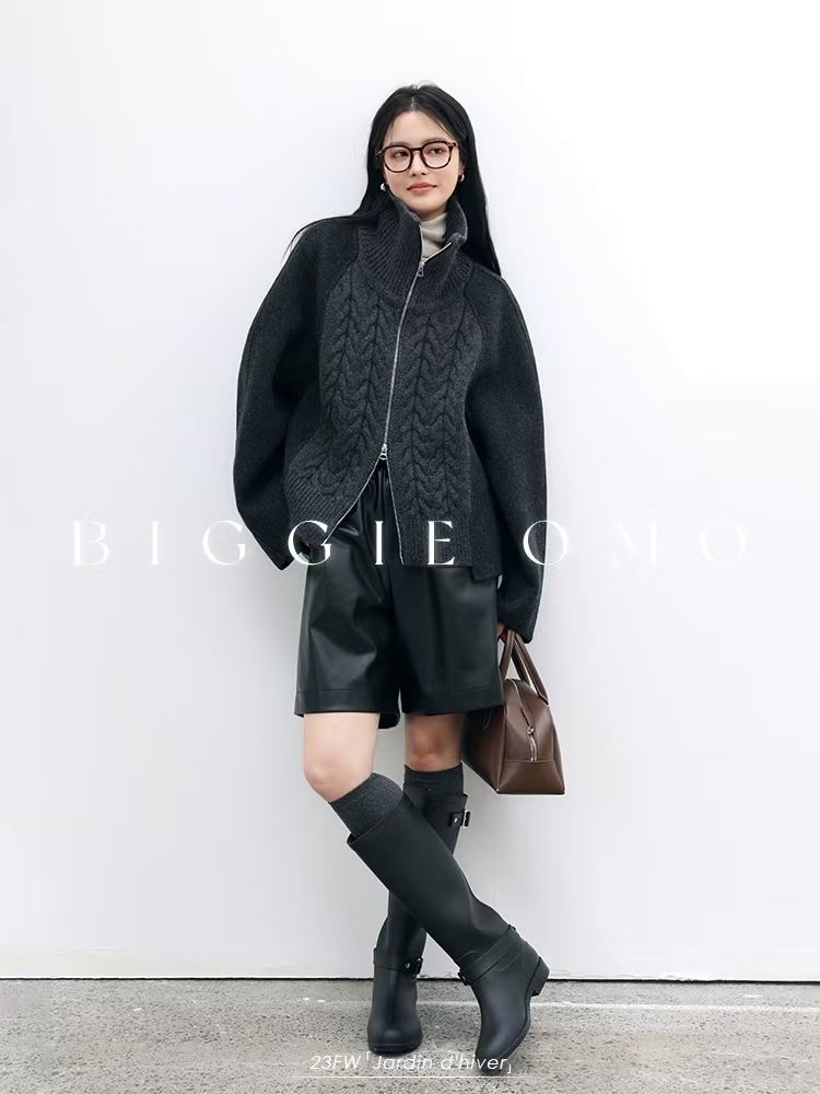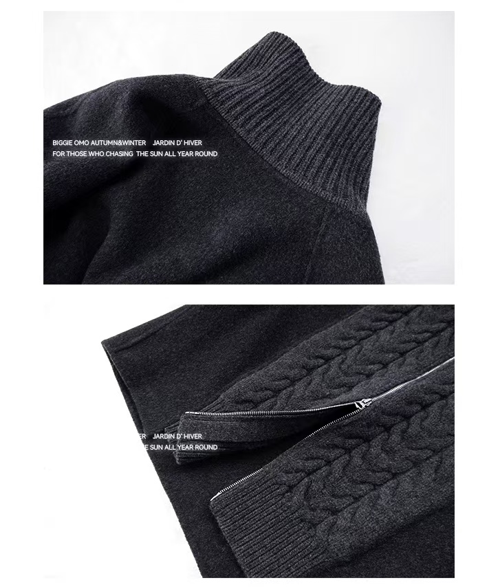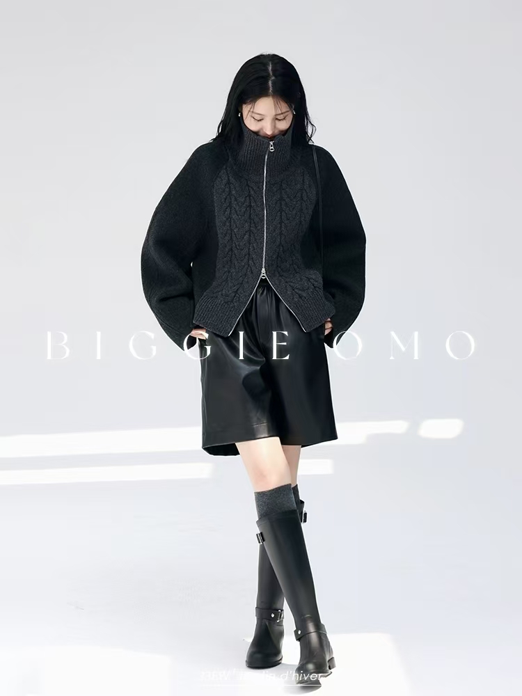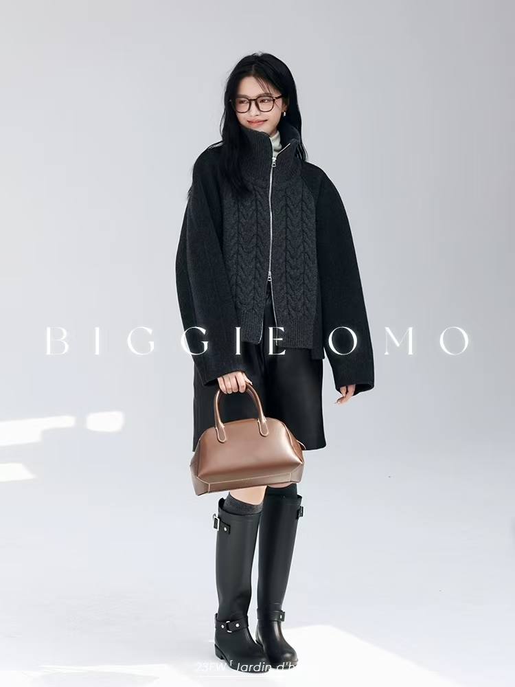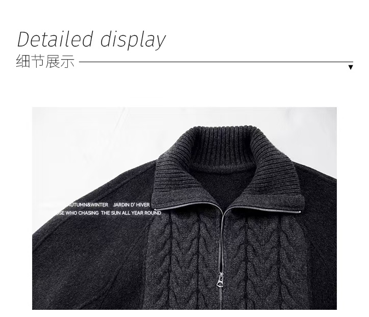 [特价]针织拼接全羊毛双面呢廓形短款拉链立领外套大衣(预售,约3天发货)