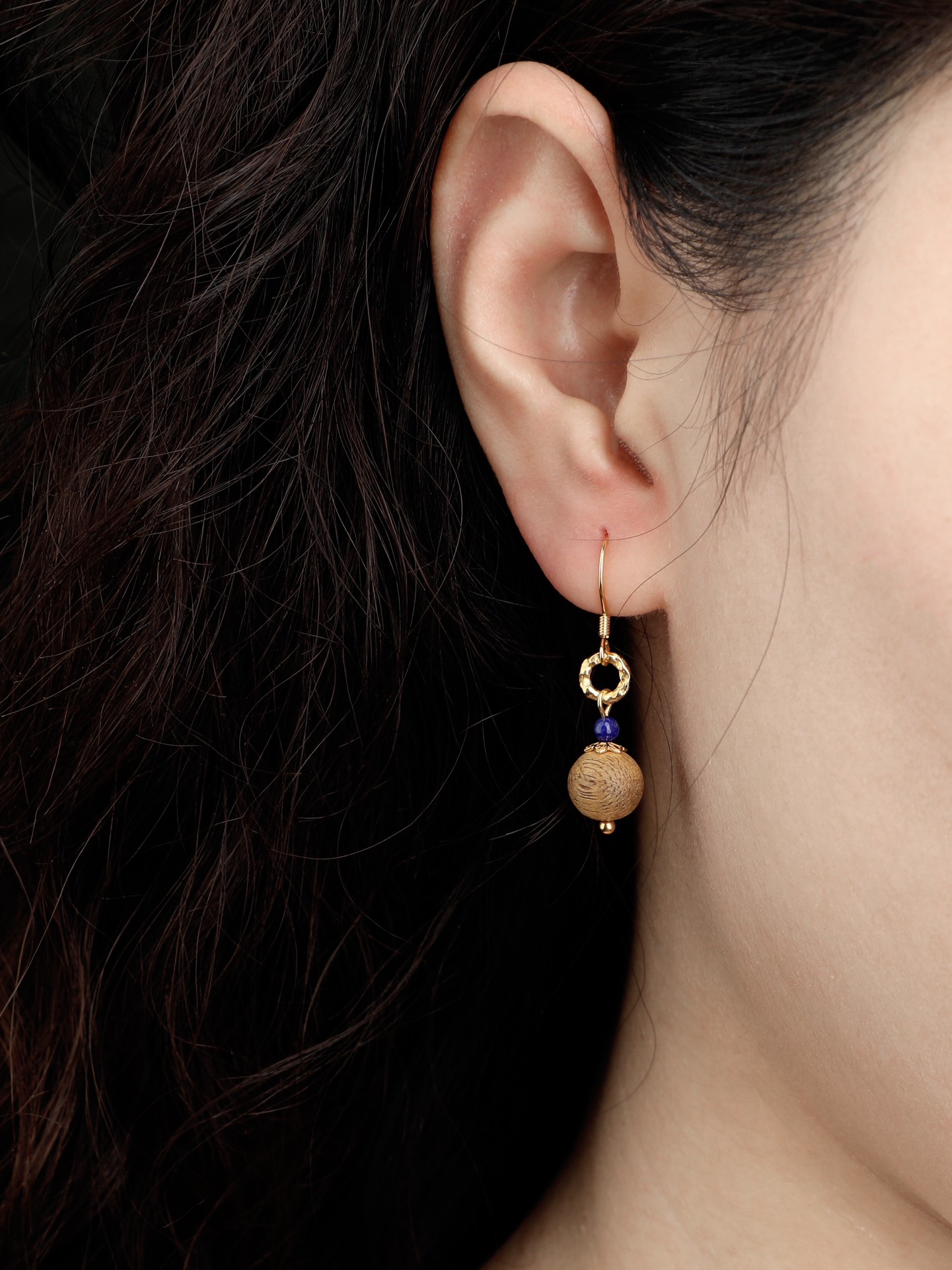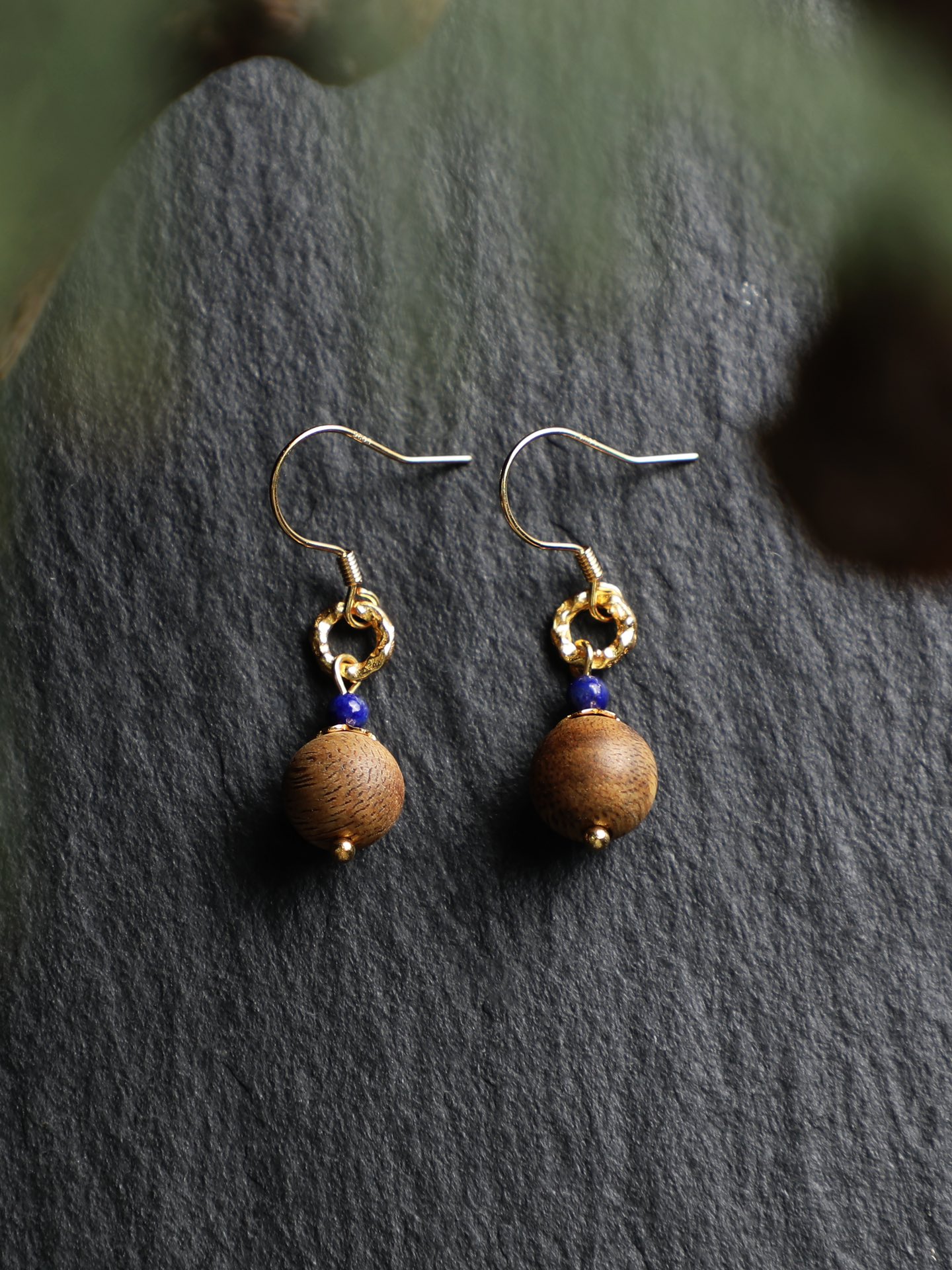 奇楠青金石耳环1对创意沉香首饰天然材质