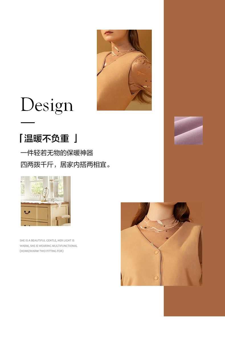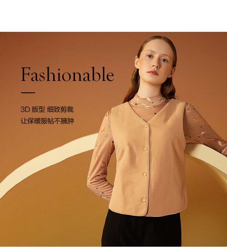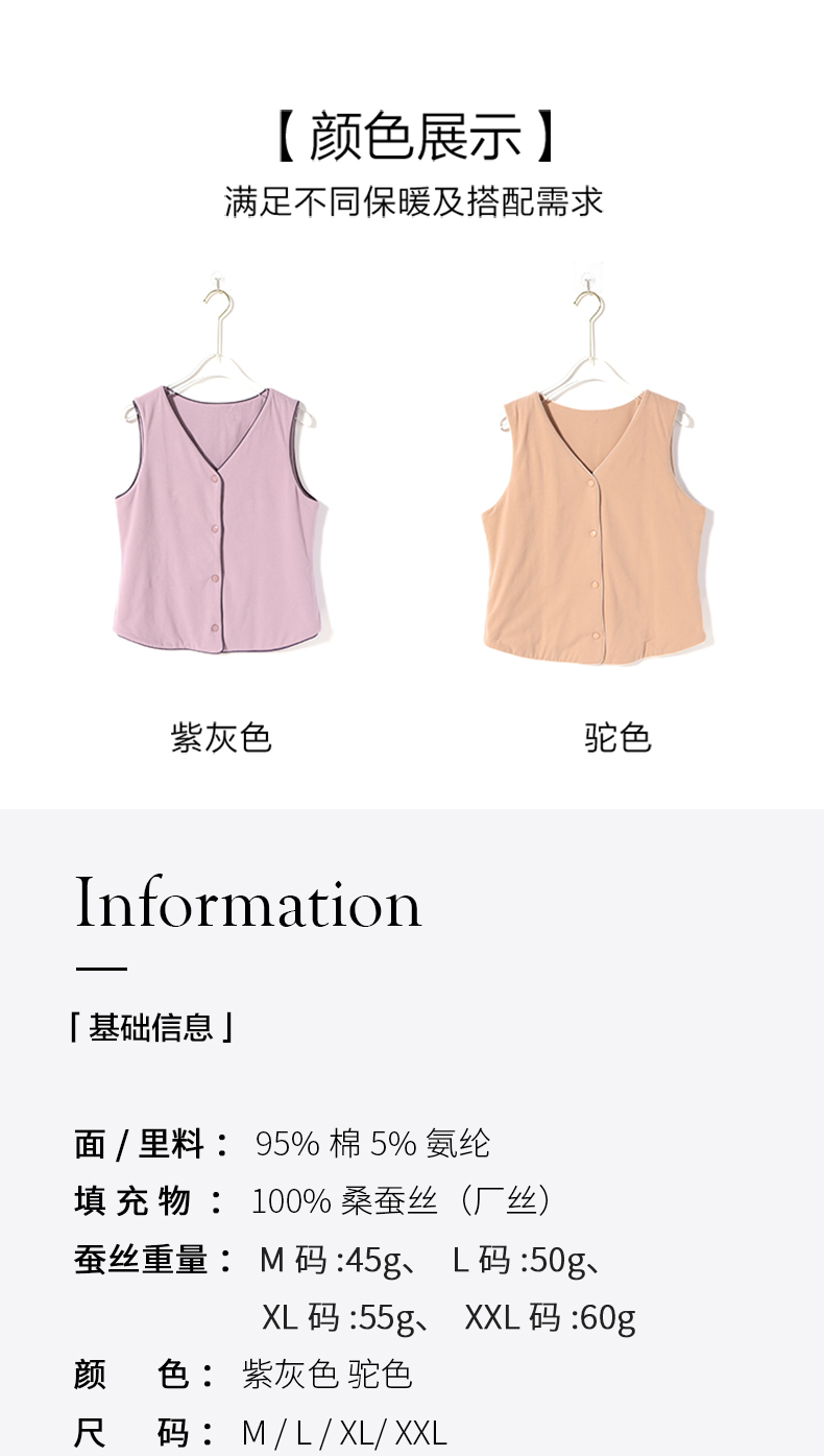金三塔保暖真丝马甲桑蚕丝填充时尚保暖基础秋冬小马甲背心 3NSFAD730