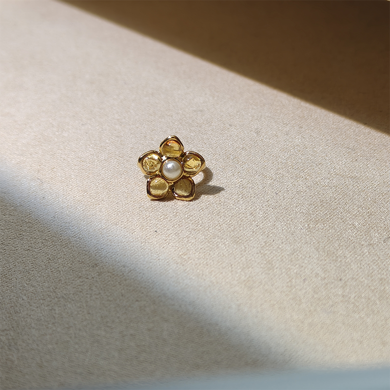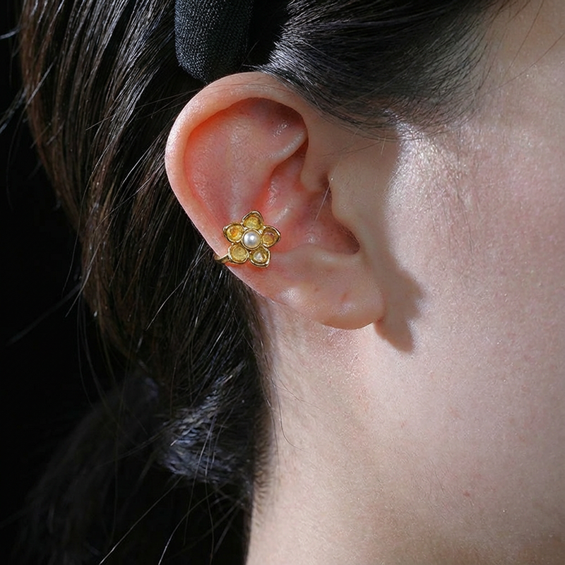 订购5个月到|Gripoix Paris-Flower-淡干邑色 花朵 琉璃 耳廓夹[法国设计师]