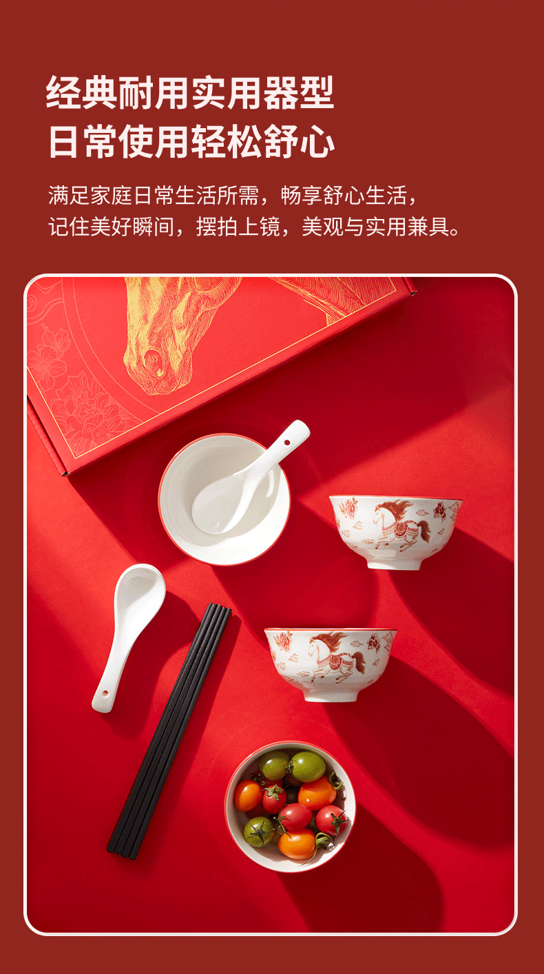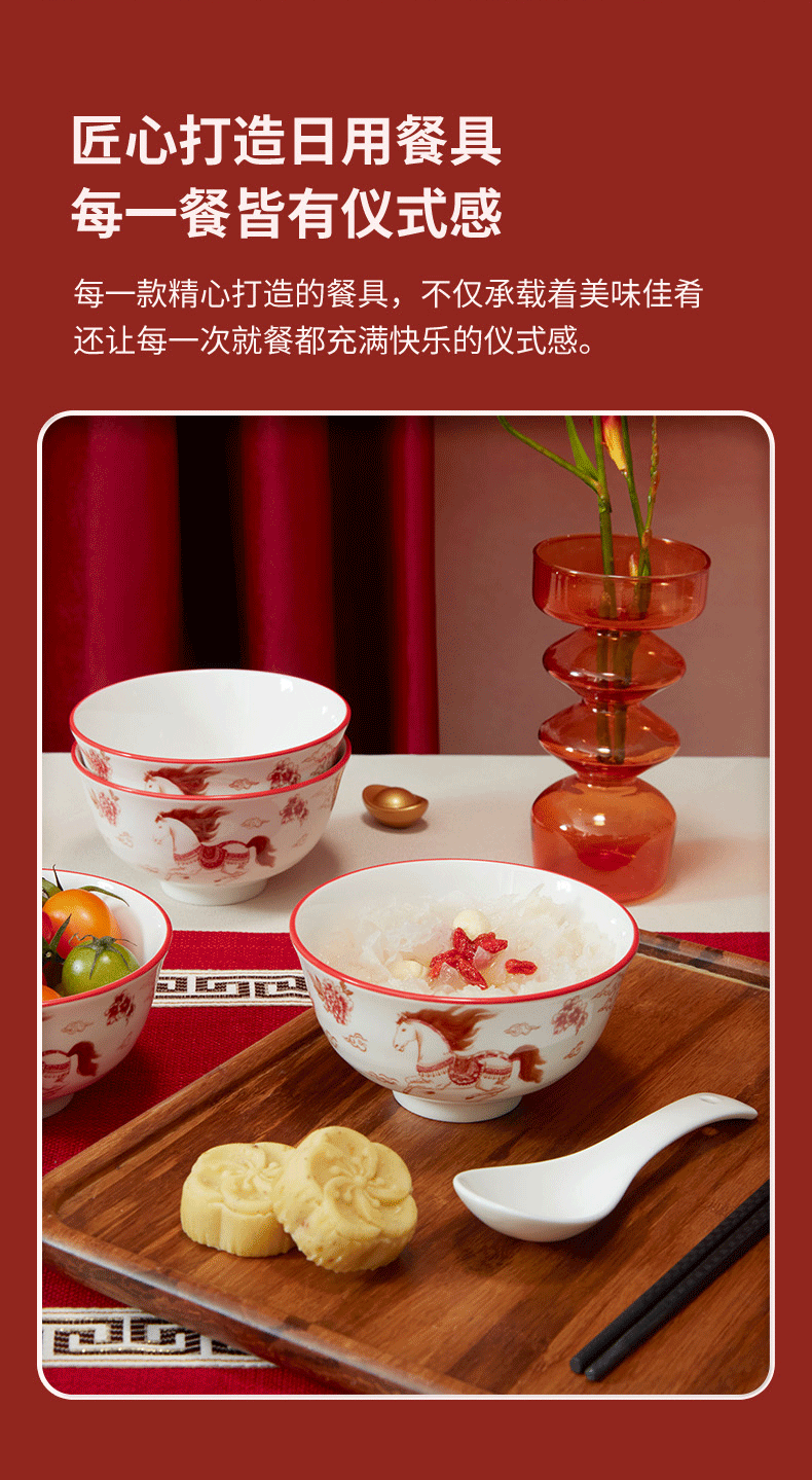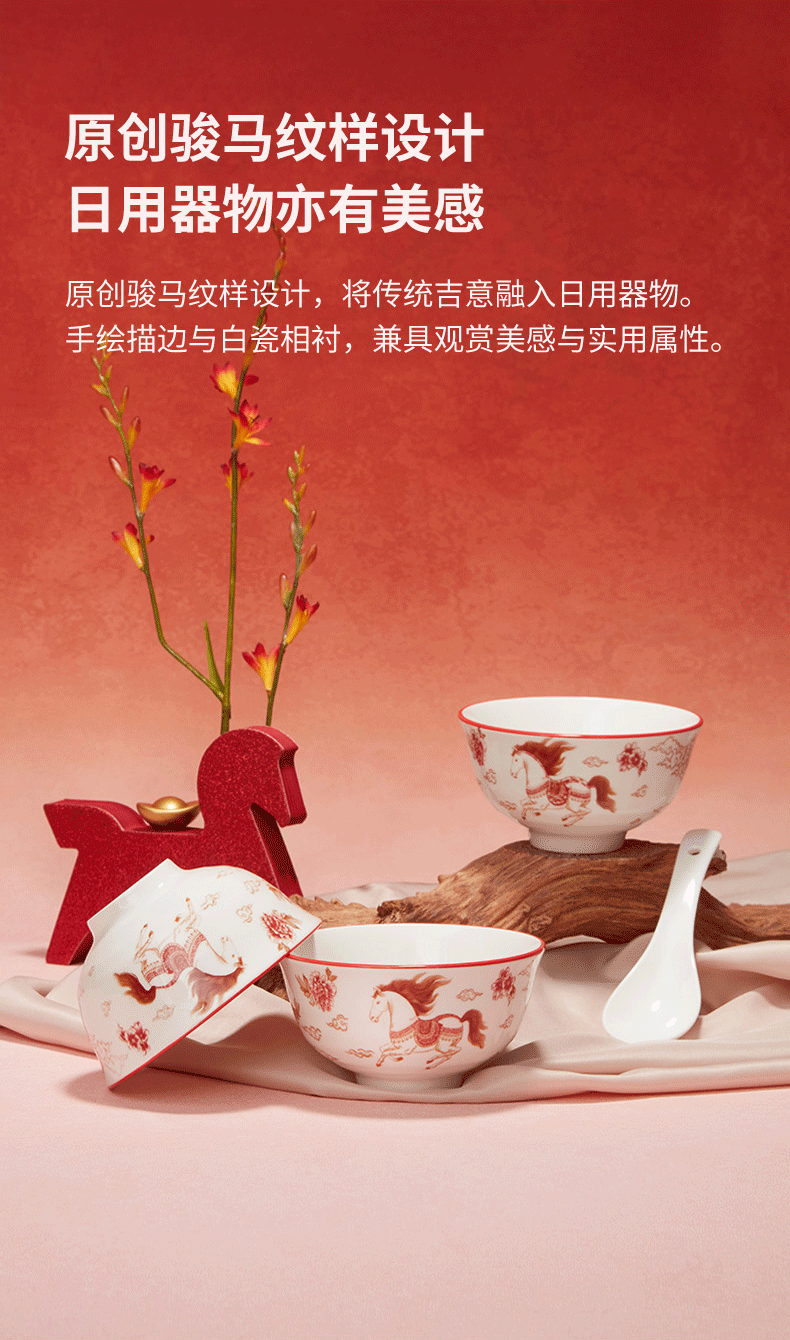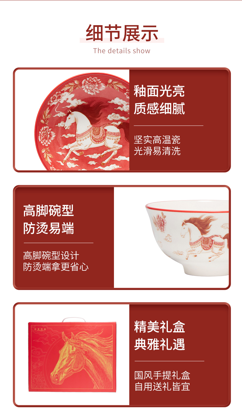 热卖!马年开运餐具!【星*克合作品牌】共禾京品 祥骏呈瑞新年餐具套装 新年换新碗 餐盘/小碗 精美礼盒包装 12件组/16件组