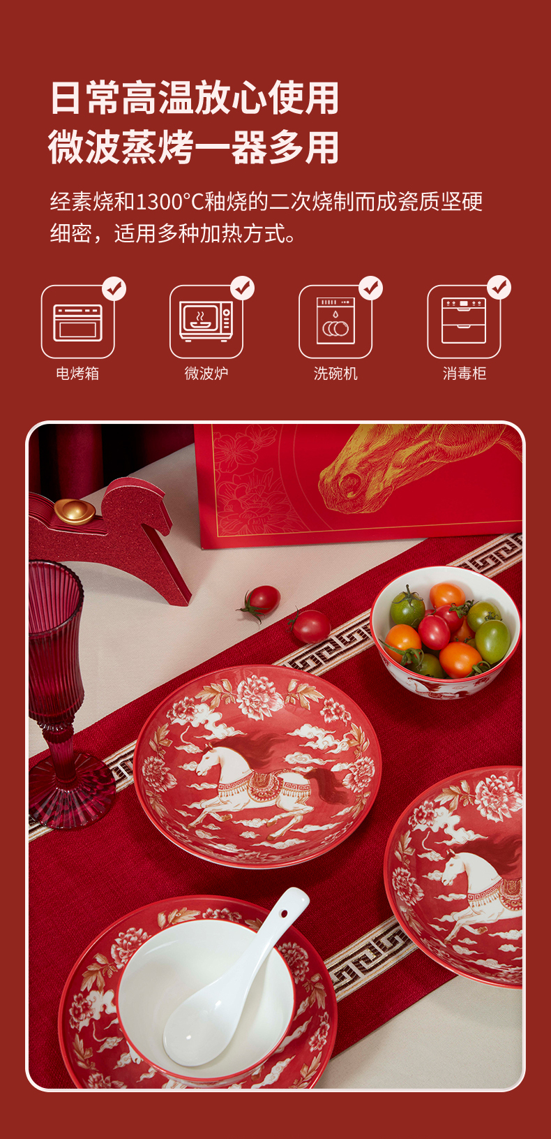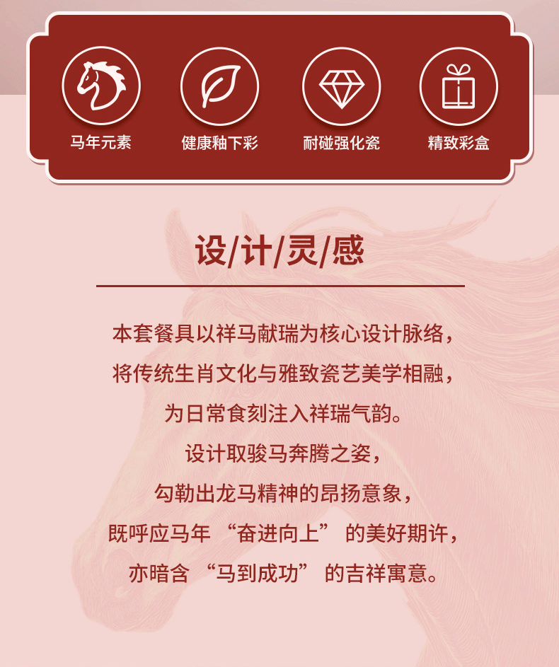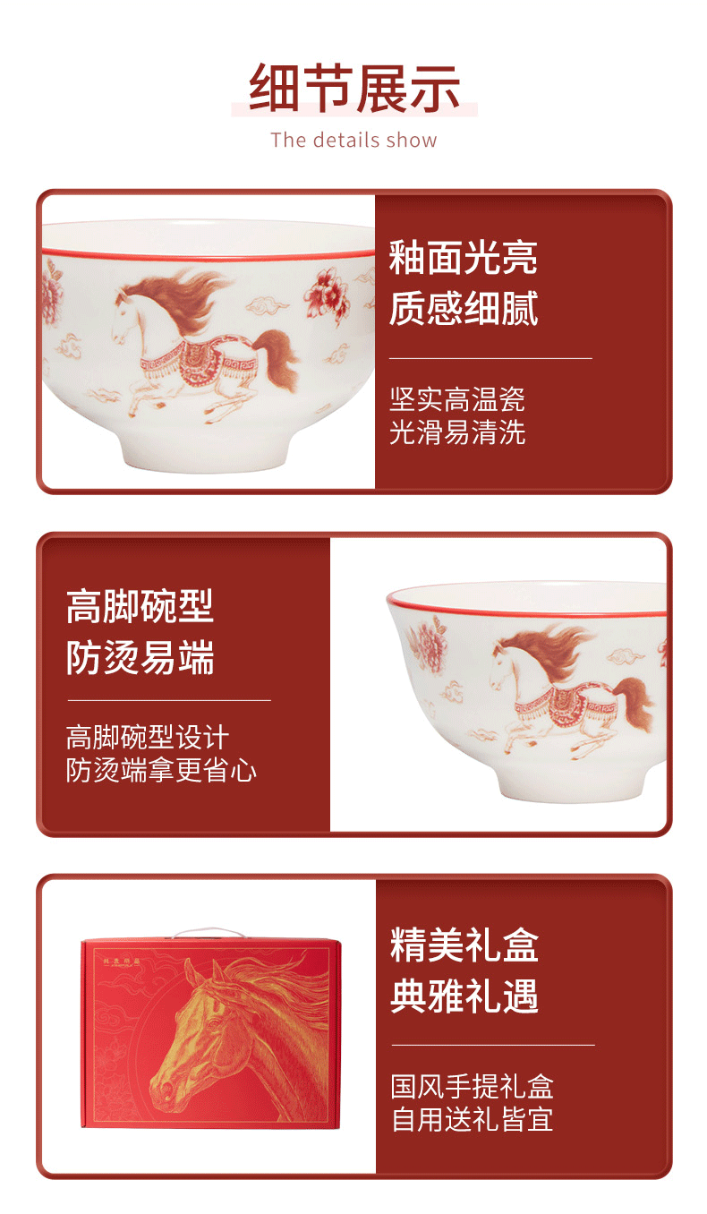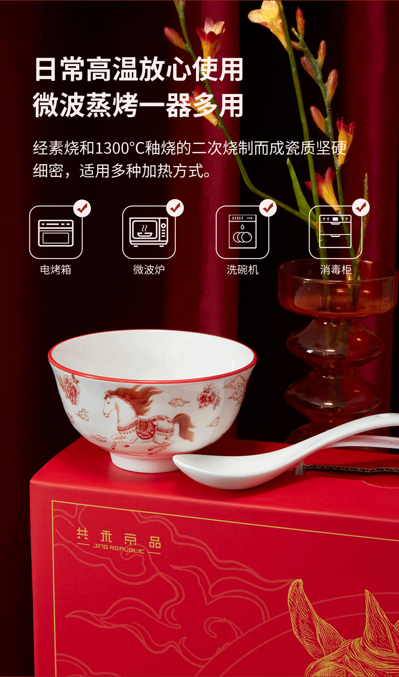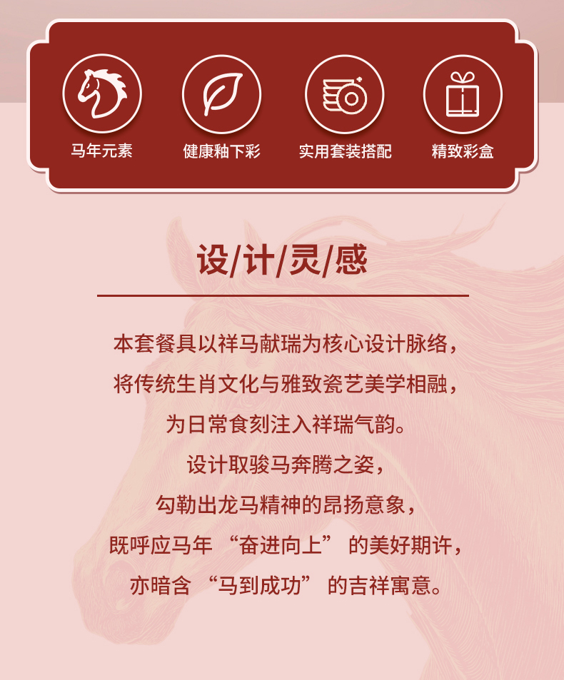 热卖!马年开运餐具!【星*克合作品牌】共禾京品 祥骏呈瑞新年餐具套装 新年换新碗 餐盘/小碗 精美礼盒包装 12件组/16件组