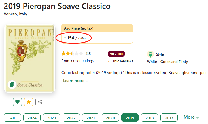 以下是 2019 年皮罗潘酒庄经典索阿韦干白(Pieropan Soave Classico)的详细介绍。