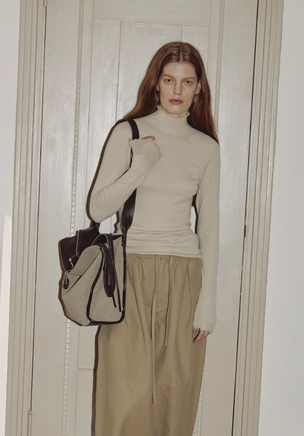 LA PISCINE couusse boyfriend pants 灰色系带长裤